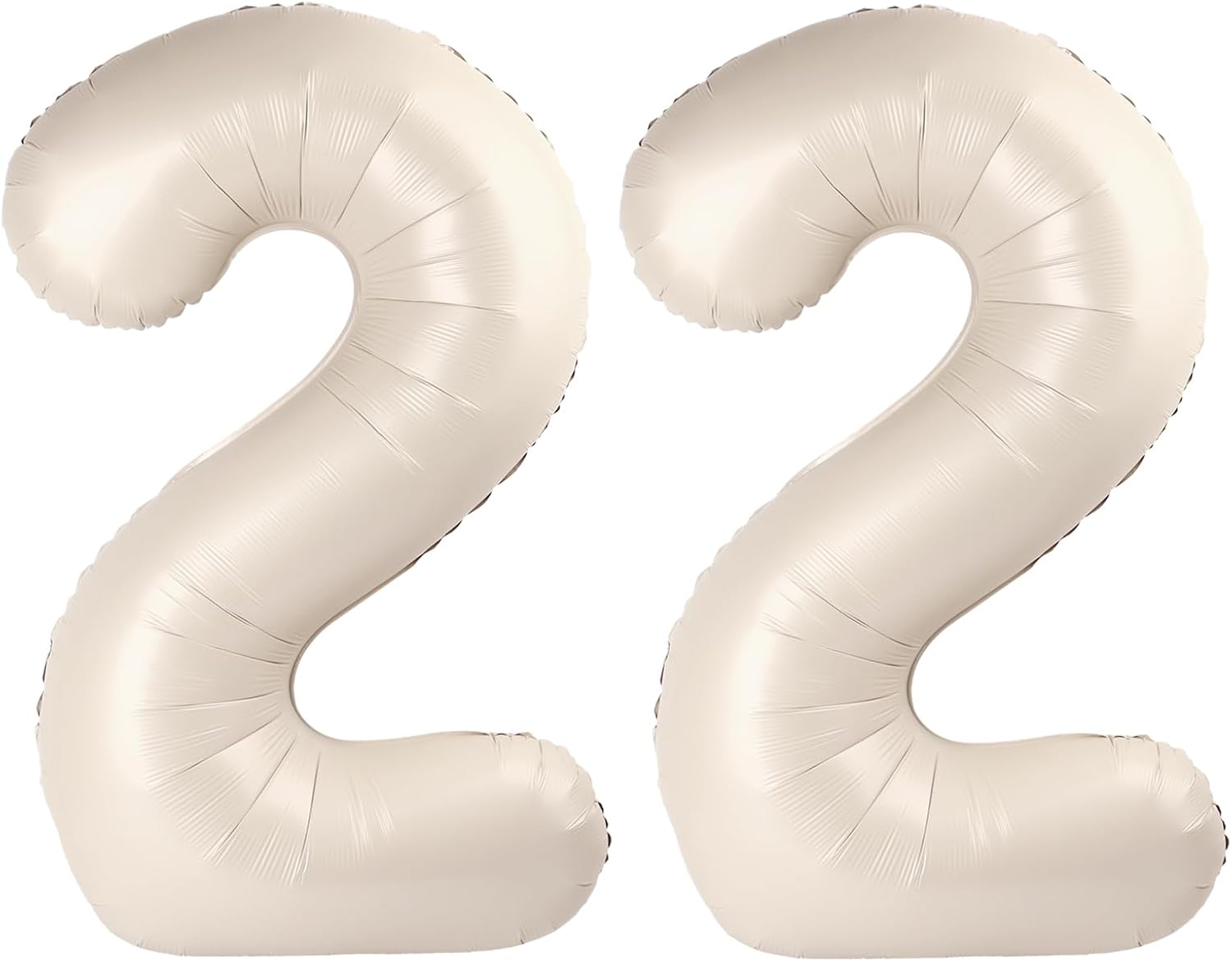 • 1.Elegant Understated Cream White Number Balloons:You will receive an uninflated 40 inch number 22 balloon.Balloons are always the best statement of romance and surprise.Big balloons symbolize vitality exoticism,adding glamour to 22nd birthday parties.Bright metallic cream white and huge size make number 22 balloon cream white a highlight of special parties.Choose one or more cream white numbers from 0-9 balloon,and use 22 balloons bulk to create a lively and charming birthday party!