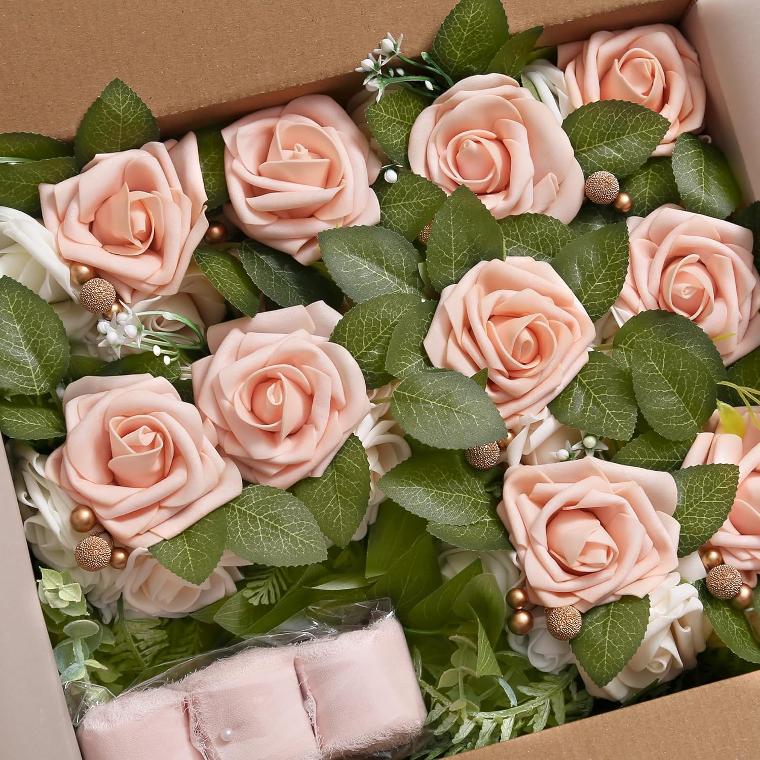 • Material: Beautiful and real-looking artificial foam roses, leaves, soft handmade chiffon ribbons