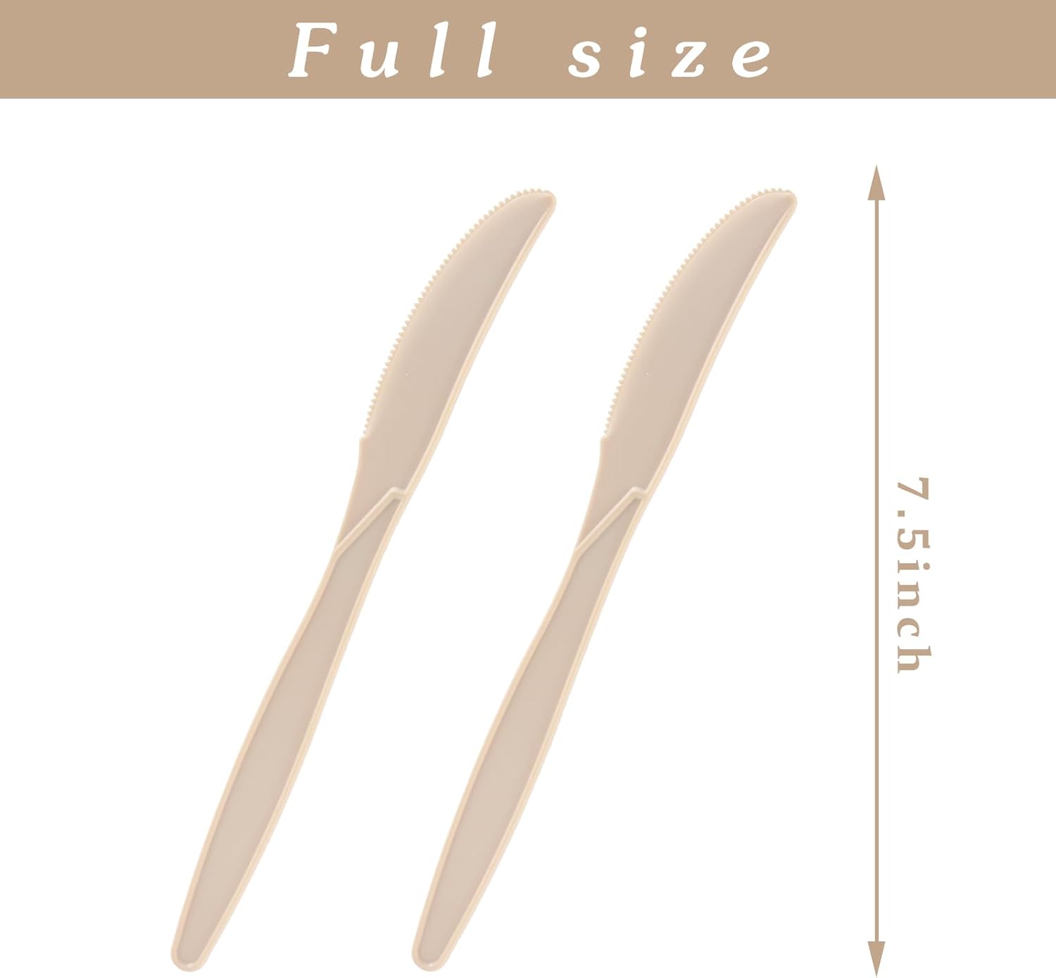 100% Compostable Knives 50 Count,Disposable Knives No Plastic Knives Heavy Duty Silverware, BPA-Free Cutlery Flatware Utensils Ecofriendly,Light Brown