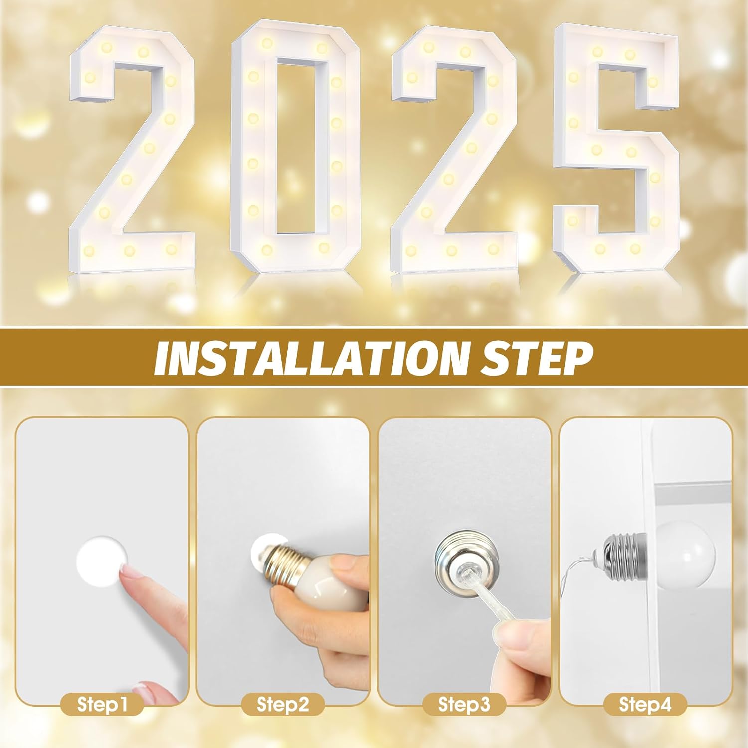 • 【Light Up Your Party】Marquee numbers 4 feet tall / 48 inches / 120 cm. 27 letters,10 numbers can freely customize your party theme: 2025,BABY,MARRY ME,LOVE,BIRTHDAY,CHRISTMAS,NEW YEAR etc