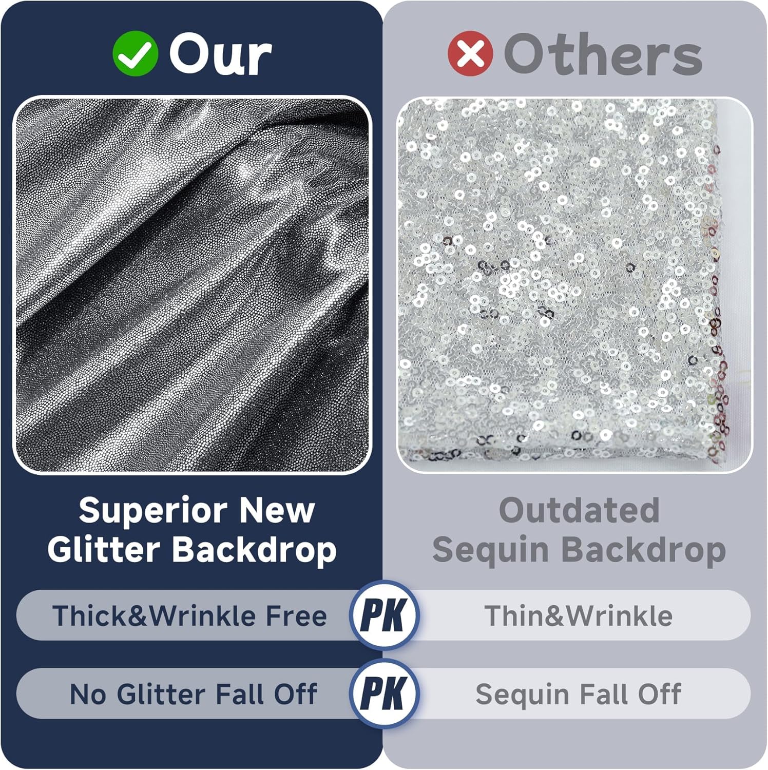 • New Glitter Sequin Backdrop Curtain - Made of soft and smooth polyester fabric and glitter, more superior than ordinary sequin backdrop curtains. It's more thick and not falling off sequins, make your parties more charming and sparkling.