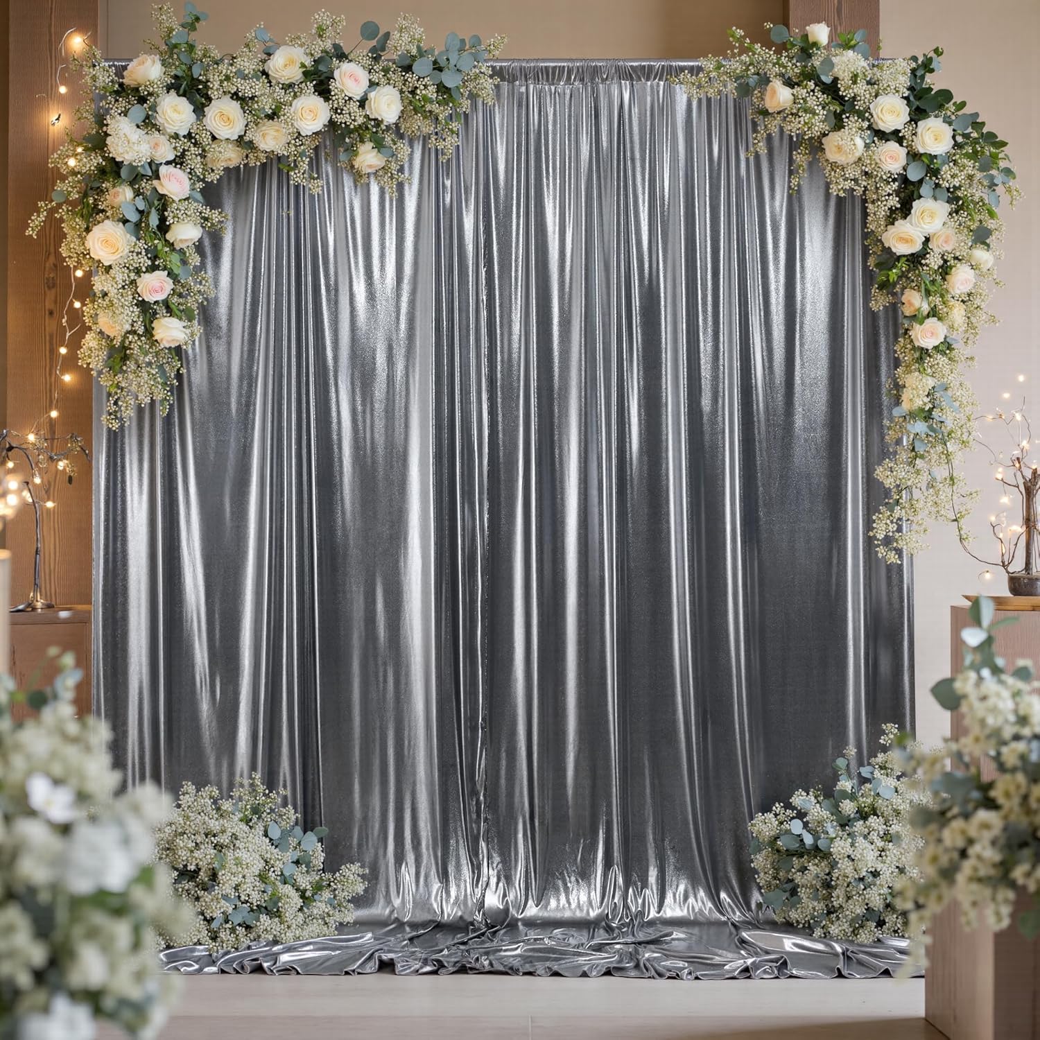 • Easy to Care Black Silver Shimmer Curtains Our 10ft Black Silver sequin glitter party background curtain panels are made of wrinkle-free material, which could be used without ironing. Let you make unforgettable memories for your family or your friends.