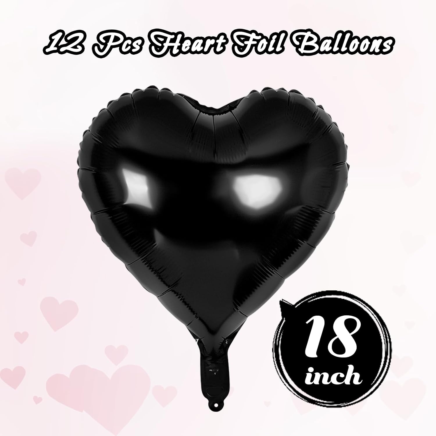 24 Pcs Black Heart Balloons,18 inch Heart Shape Foil Balloons Love Balloons Valentine Balloons for Birthday Party Wedding Engagement Party Baby Shower Valentine Day Decorations (Black)