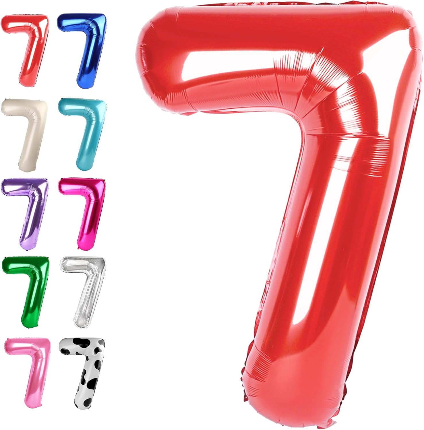 • 1.Elegant Understated Red Number Balloons: You will receive an uninflated 40 inch 7 balloon number. Big number balloons are always the best statement of romance and surprise. Red balloon symbolize vitality exoticism, adding glamour to birthday parties. Bright metallic red and huge size make 7 birthday balloon a highlight of special parties. Choose one or more numbers from 0-9 number balloon, and use 7 17 27 37 47 57 67 77 87 97 balloon numbers to create a lively and charming party!