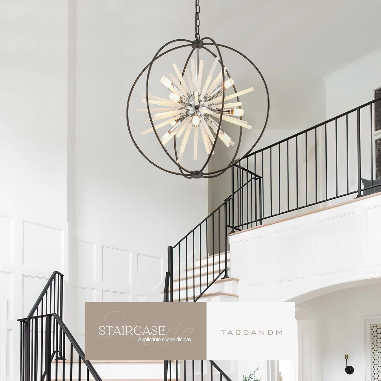 • 【Stylish Creative Design】Black Globe Sputnik Crystal Chandeliers advanced plating chrome surface treatment and black metal sphere lantern, Crystal Glass Tube design, and simple 12 Lights, It can be dimmable when you used with a dimmable bulb and compatible dimmer switch. It is not just a light for lighting, but also an art for decorating, looks like fireworks. Discover a world of exquisite illumination with our modern chandeliers, where contemporary meets vintage in perfect harmony.