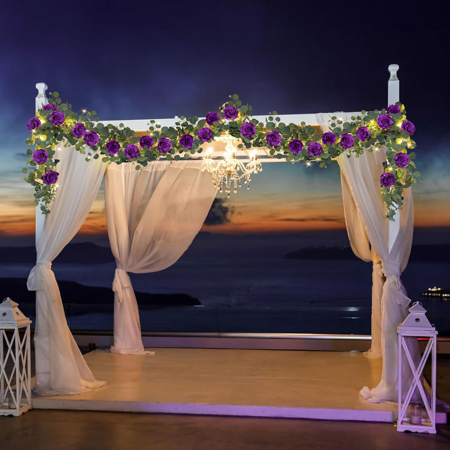 • Generous Length & Lifelike Details: Each artificial garland measures 6.6FT/80" in length and is adorned with 12 purple roses (each approximately 4" in diameter) and abundant gypsophila flowers. The generous length and realistic design make these faux garlands ideal for draping over table, arch, or backdrop