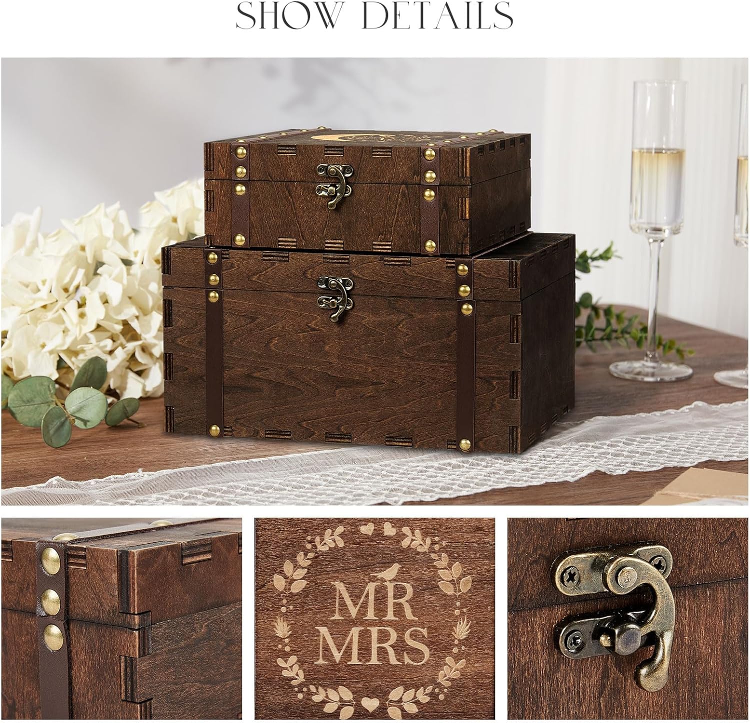 • Vintage Design: Romantic "Mr & Mrs" engraved on the outside lid, both engraved text inside, a testament to your shared journey. Decorated with dark brown PU leather and rivet, vintage and novelty, a sturdy hinged lock and lid for security. Our beautifully memory box is a sweet way to share your love