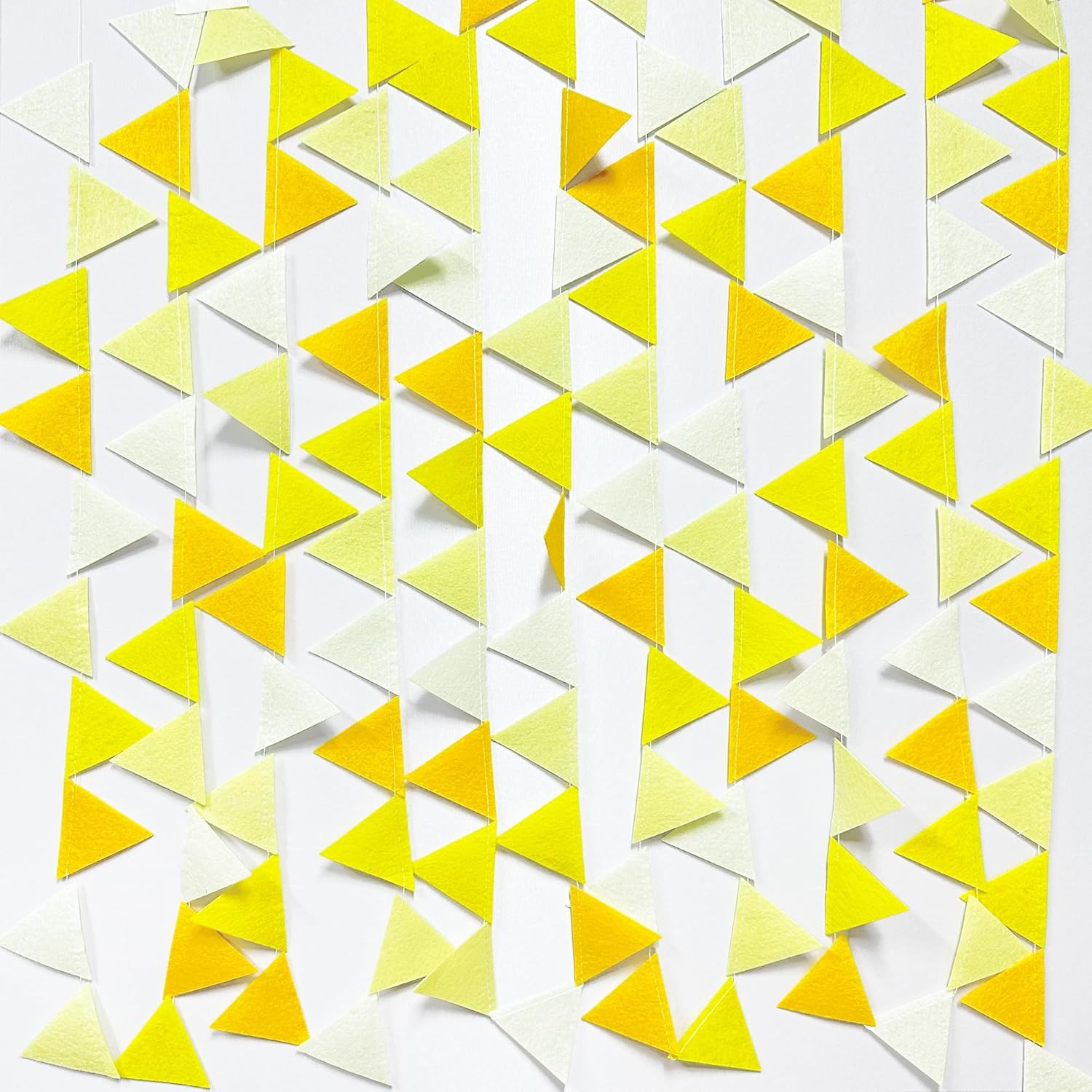 • 🟡Easy Assembly - Easy hanging and reusable.Perfect fit for gradient yellow party decor.unroll and unwrap garland carefully. due to delicate nature of thread,may tangle.This yellow mini triangle pennant makes an attractive backdrop for videos and photos.