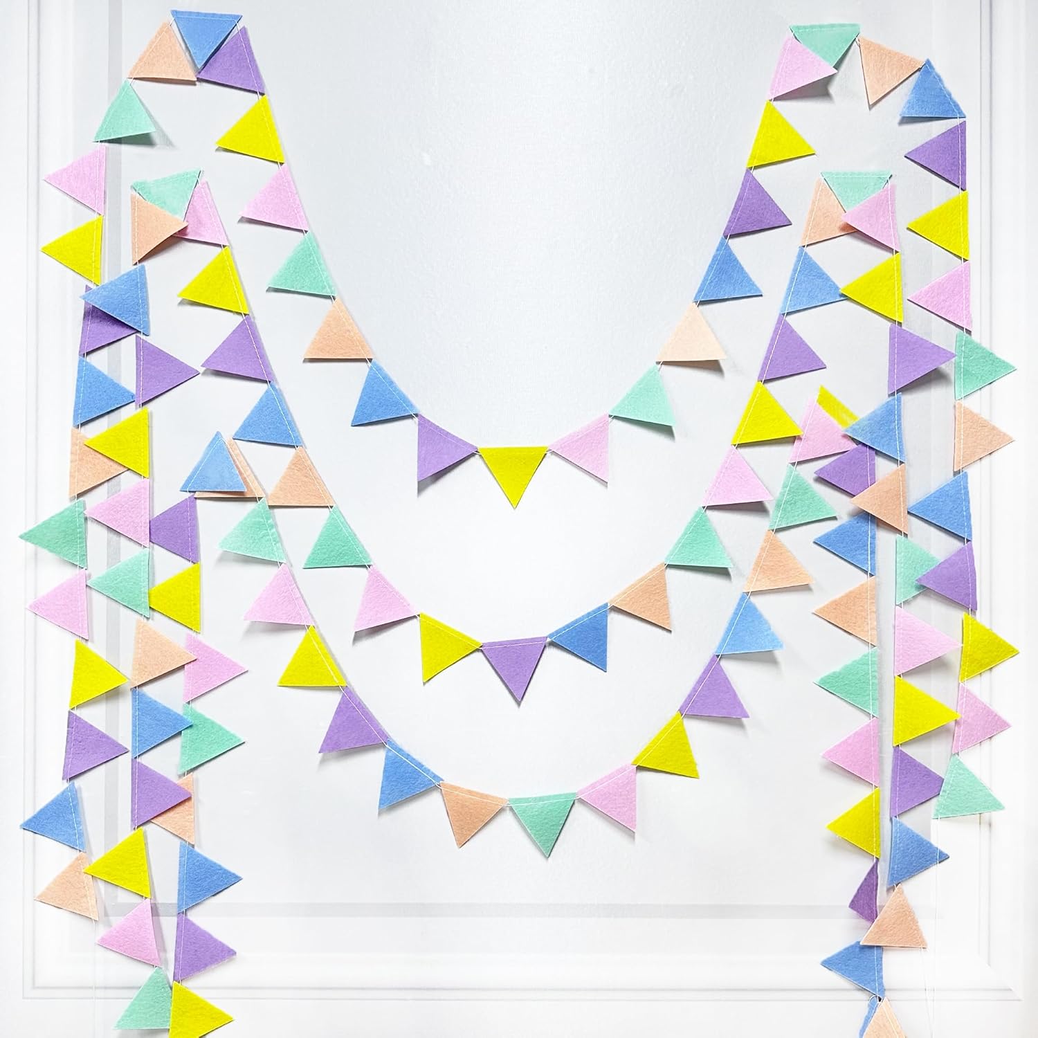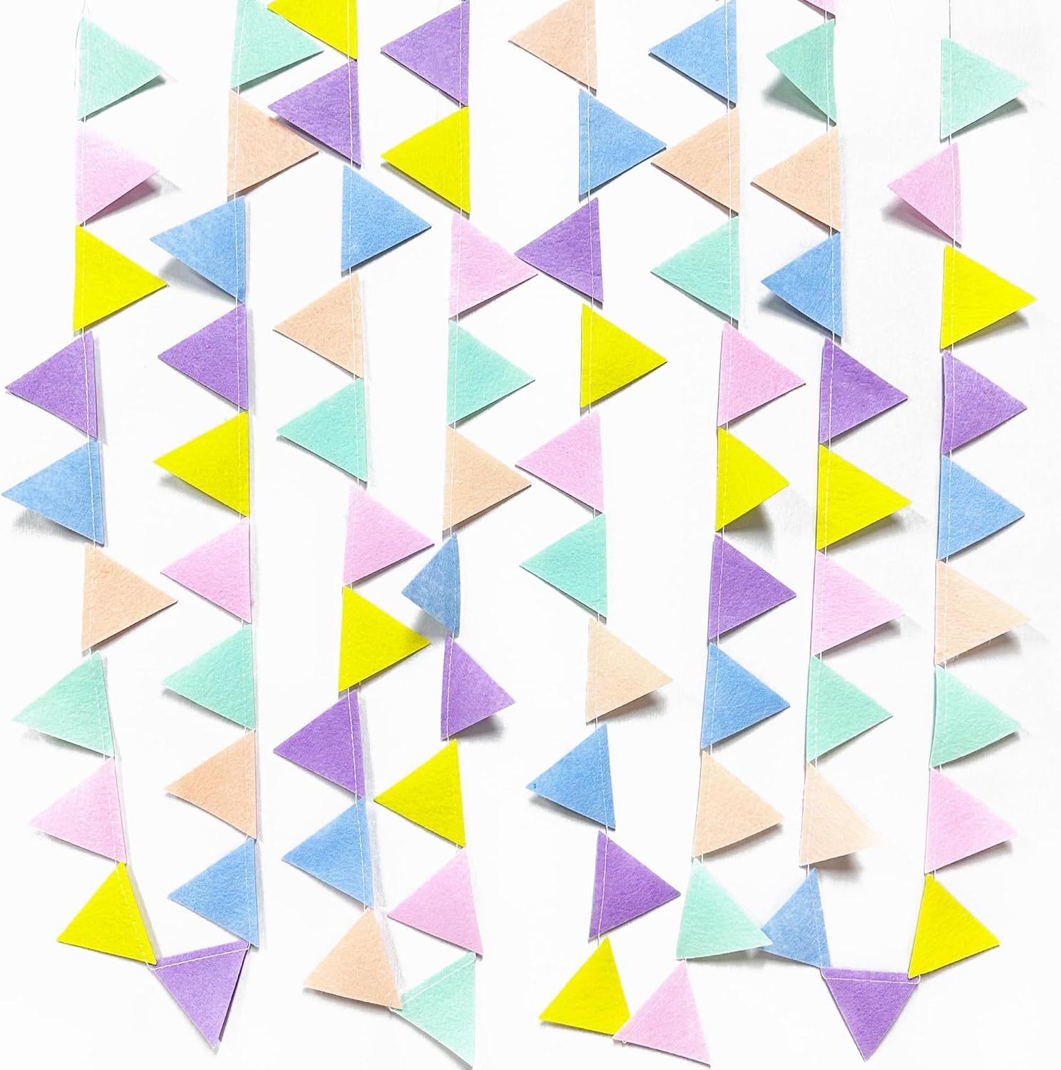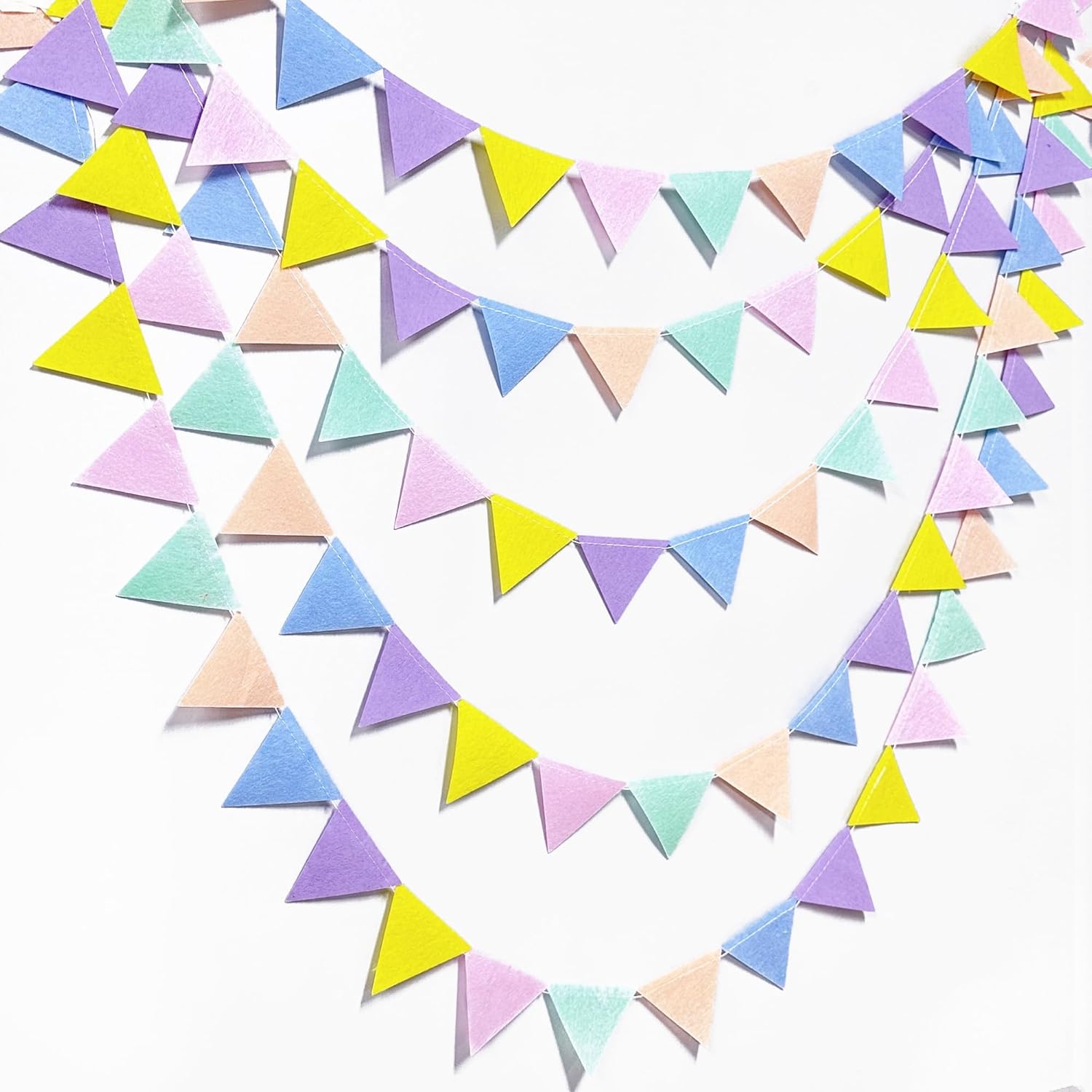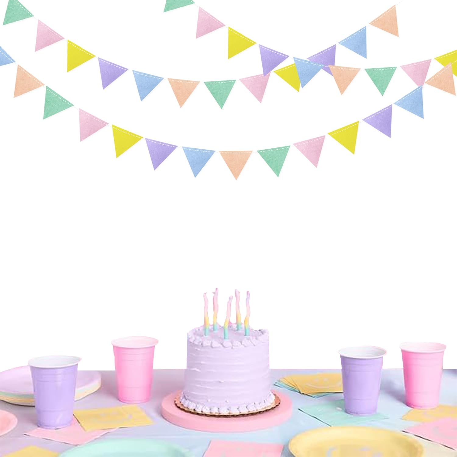 pinkblume Pastel Party Decoration Macaron Felt Hanging Triangle Mini Bunting Pennant Banner Flag for Pastel Colorful Birthday Wedding Baby Shower Engagement Spring Easter Party Classroom Nursery Decor
