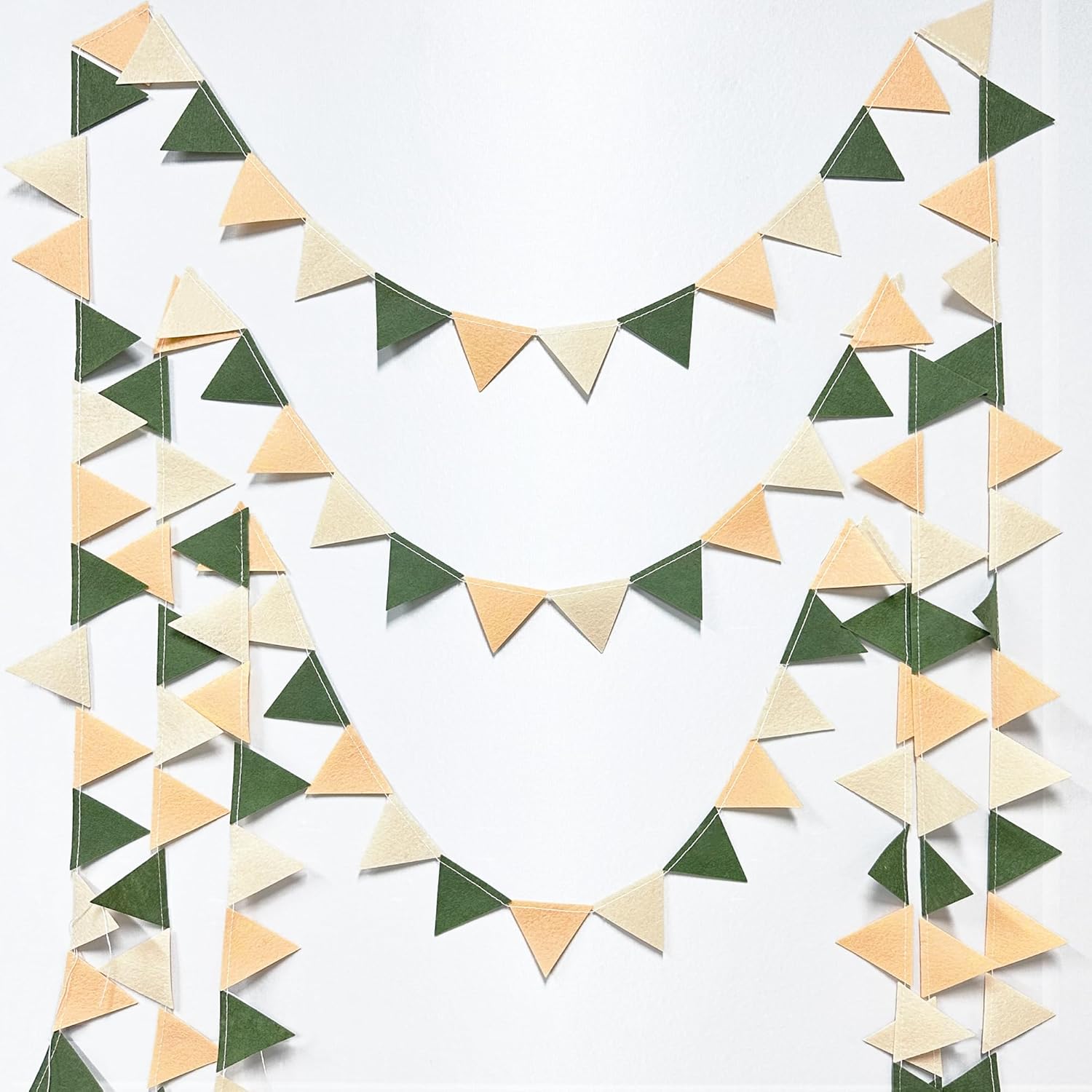 • Easy Assembly - Easy hanging and reusable.Perfect fit for sage green party decor.unroll and unwrap garland carefully. due to delicate nature of thread,may tangle.This sage green mini triangle pennant makes an attractive backdrop for videos and photos.