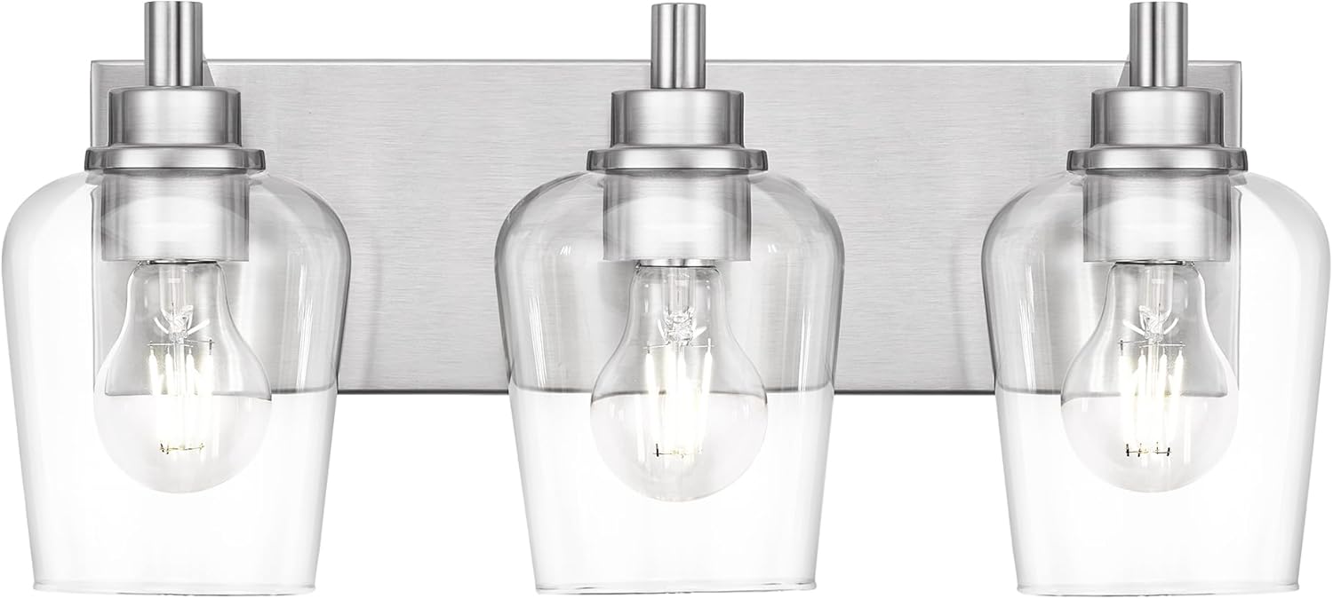 • Bulb Requirements: This brushed nickel bathroom lighting fixtures over mirror requires 3 E26 base bulbs, 60W Max. Fully dimmable when used with a dimmable bulb and dimmer switch (bulb and dimmer switch not included)