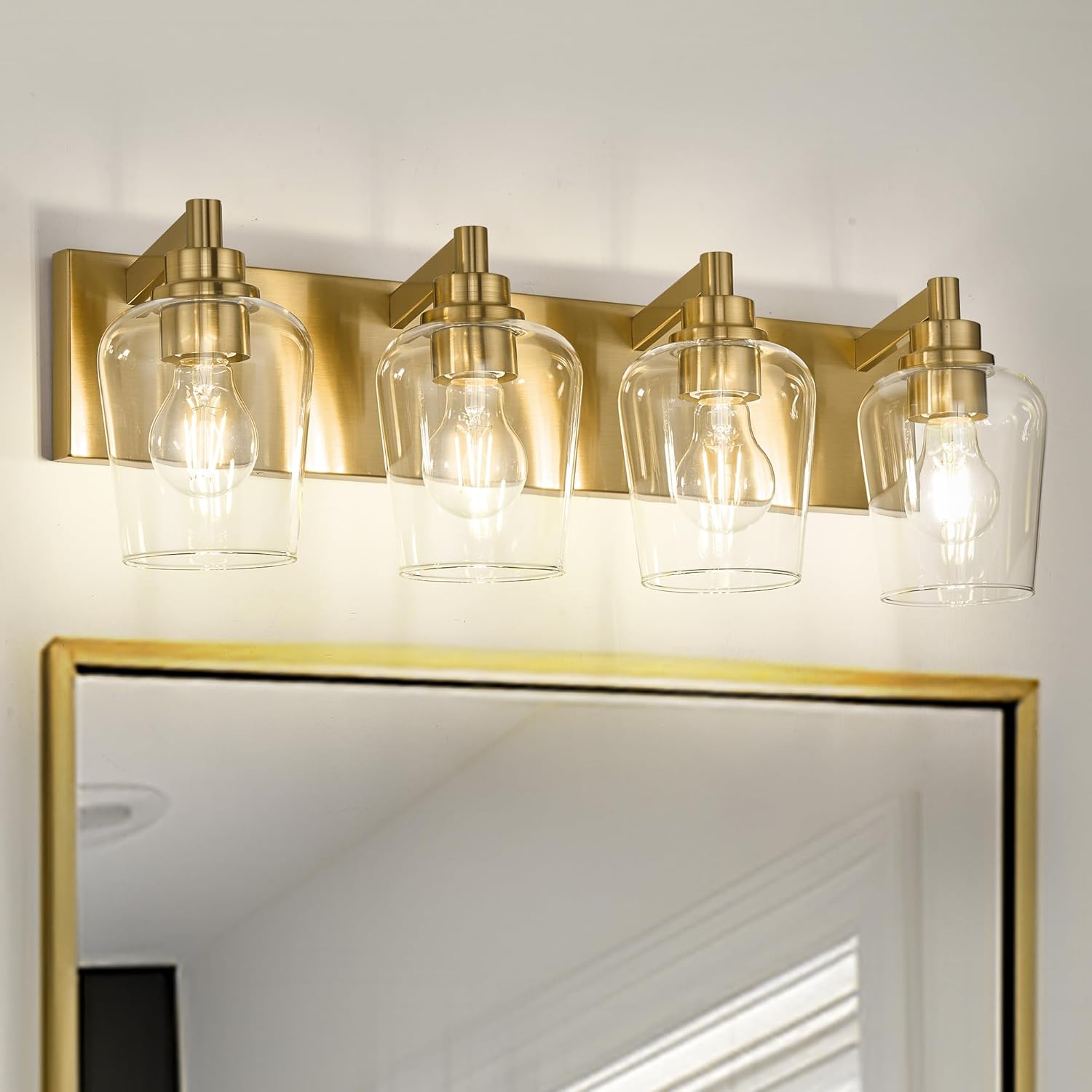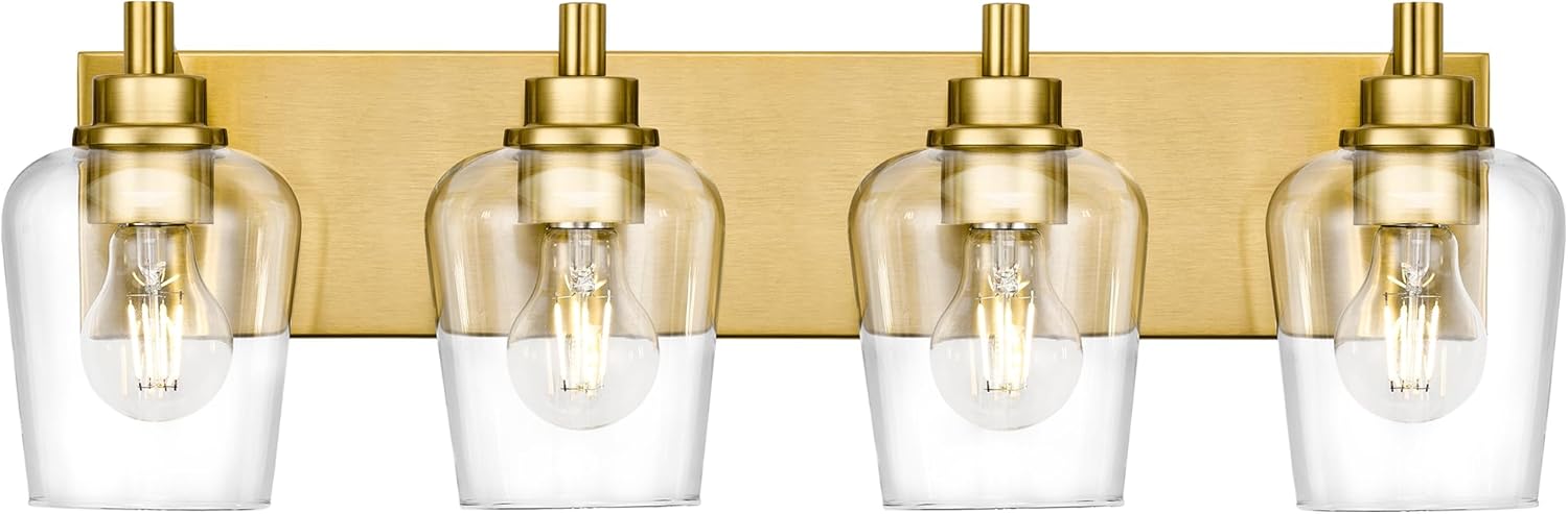 • Bulb Requirements: This gold bathroom lighting fixtures over mirror requires 4 E26 base bulbs, 60W Max. Fully dimmable when used with a dimmable bulb and dimmer switch (bulb and dimmer switch not included)