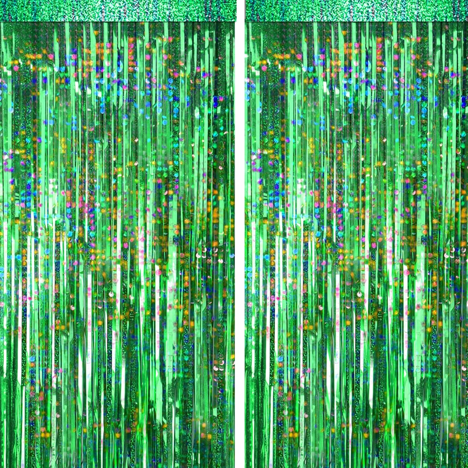 • High Quality Materials: These green fringe backdrop curtains are made of aluminum foil, safe, environmentally friendly and reusable, that is safe for both you and your kids! The iridescent foil backdrop creates a shimmering effect that adds a touch of glamour and elegance to any event.