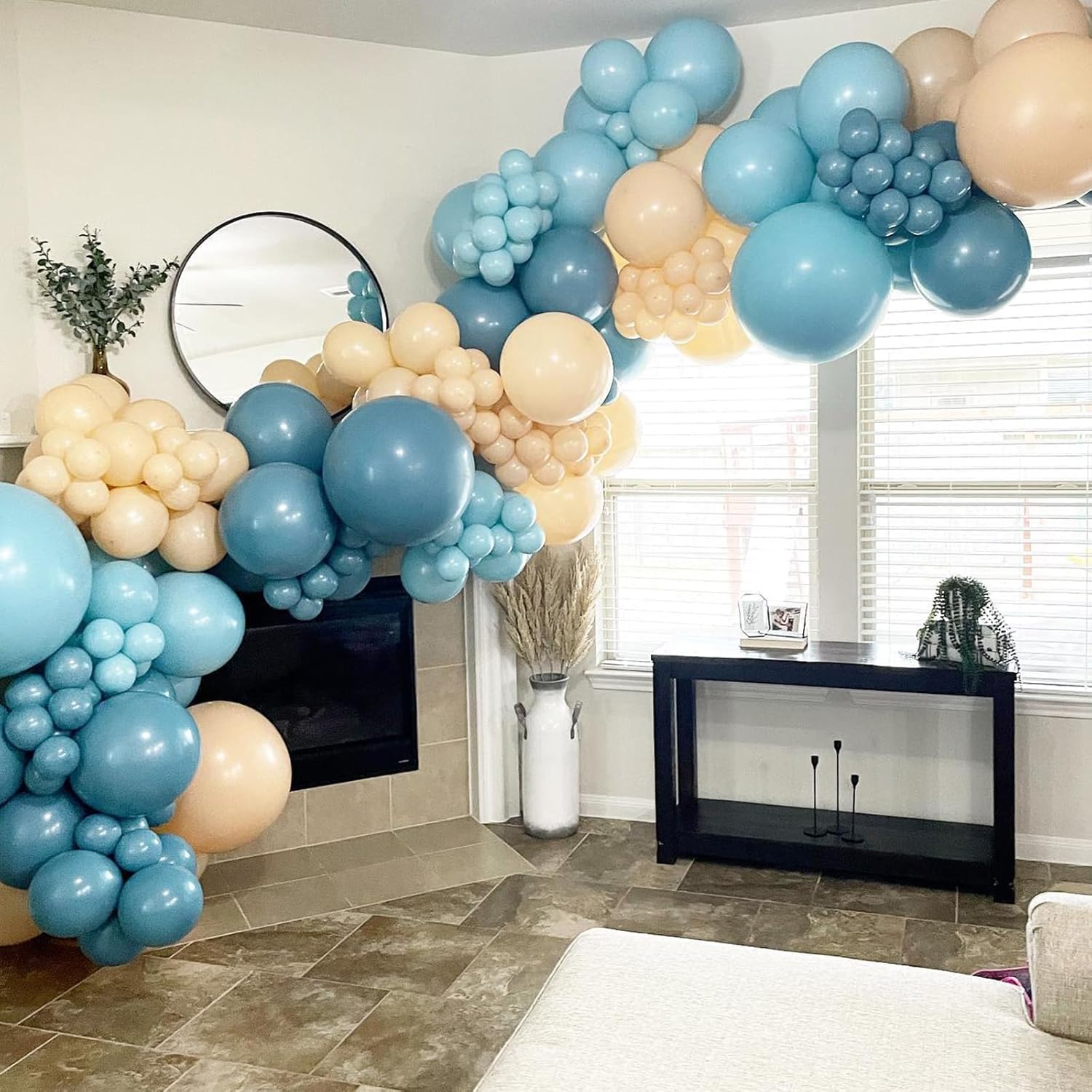 • 12 inch Dusty Blue Balloons: 52 Pcs dusty blue balloons set including 10* dusty dark blue balloons, 10* dusty blue balloons, 10* metallic quicksand gold balloons, 10* sand white balloons, 10* matte light blue balloons, 2* white ribbons. Whether it’s a baby shower, birthday party, or any theme celebration, these balloons will bring a unique visual appeal to your venue