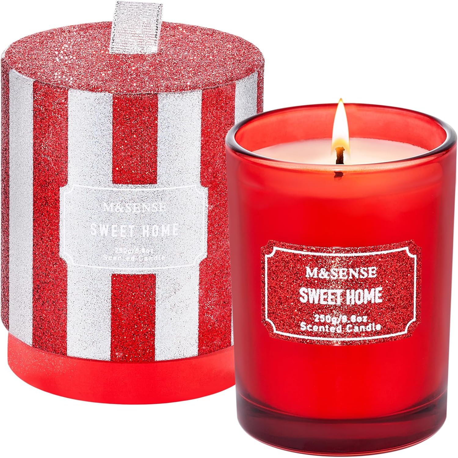 M&SENSE Cinnamon Apple Scented Candles, Classic Size 8.8 oz Glitter Jar Candles, Holiday Candles Gifts for Women, Strong Scented Natural Soy Candle For Winter Home Decor, 50 Hours Long Burning Candles