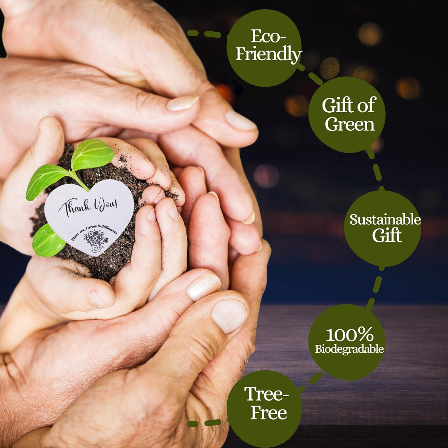 • THOUGHTFUL GIFT: This heart-shaped token embedded with wildflower seeds expresses gratitude with a sweet 'Thank You' message. Featuring flowers and pollinators, these seeded plantable paper cards make a delightful gift.