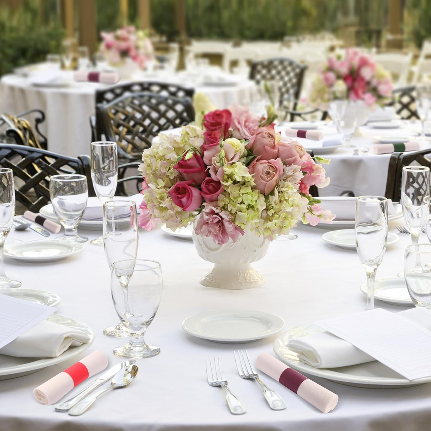 • Stylish Silverware Wraps Bands: In addition to securing your napkins, these bands also serve as stylish silverware wraps. They add a decorative touch to your flatware, making it more visually appealing and adding an extra layer of sophistication to your table setting.