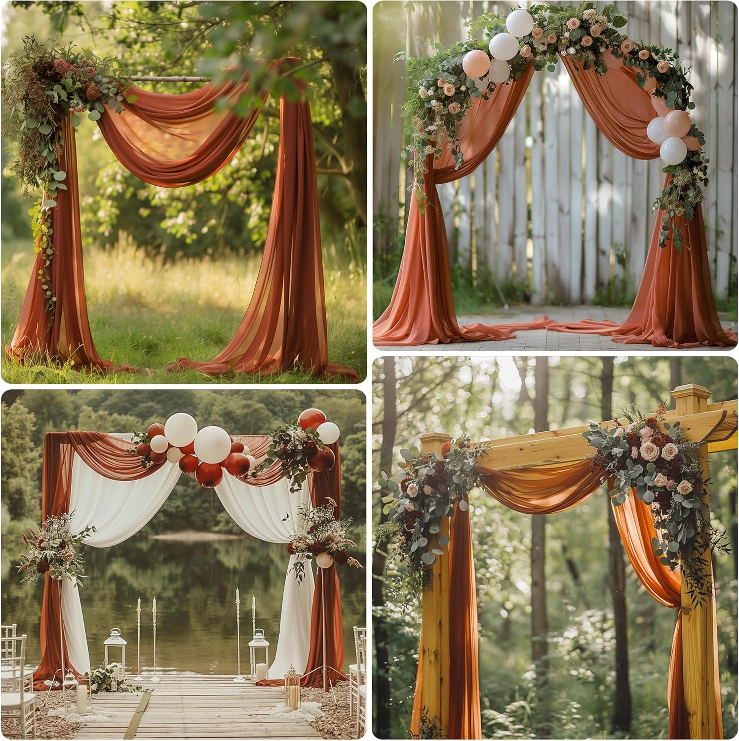 Wedding Arch Draping Fabric 3 Panels 28.7" x 20FT Terracotta Sheer Chiffon Backdrop Drapes for Wedding Ceremony Birthday Party Bridal Shower Outdoor Decoration