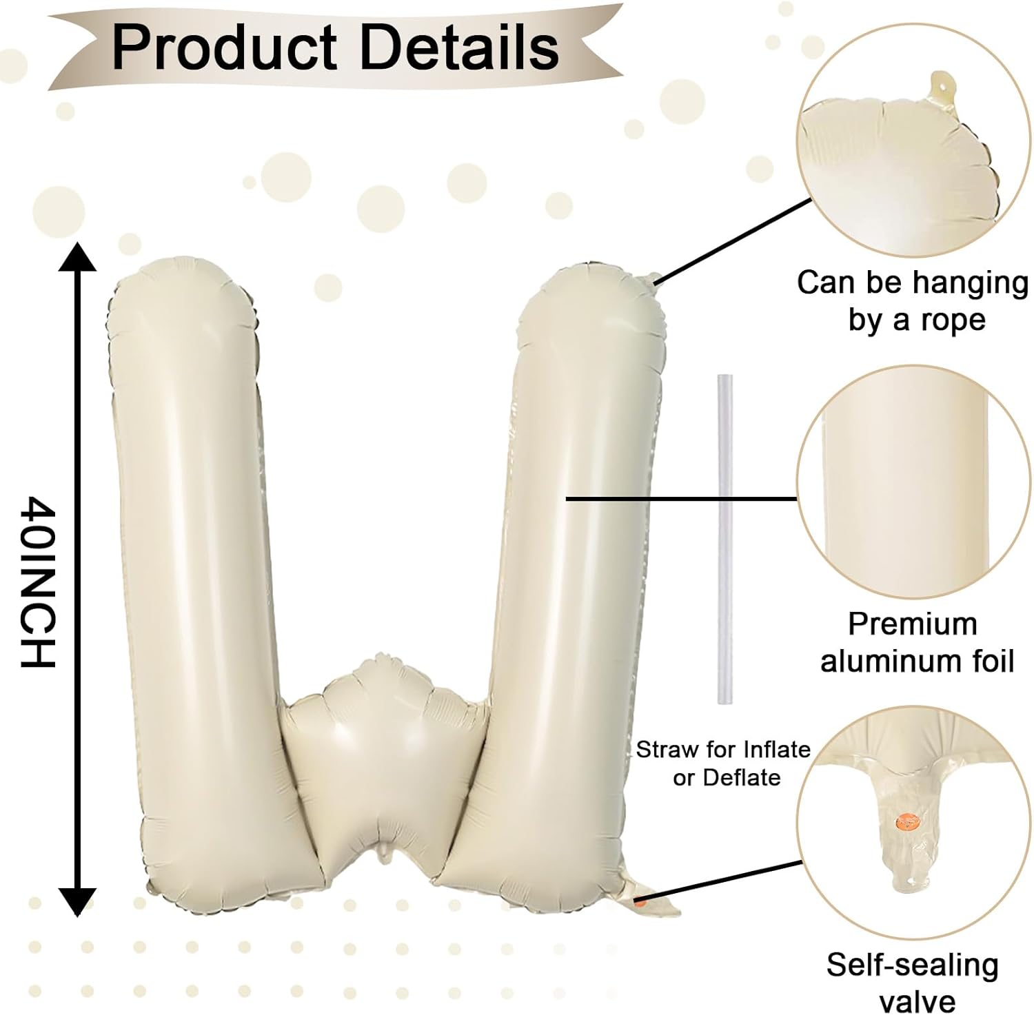 • Cream White Letter W Balloon 40 Inch: Includes 1pc giant beige "W" letter balloon and 1 straw for easy inflation and deflation. Our elegant big beige balloons are perfect for personalized parties. With 26 letters (A-Z) and numbers (1-9) available, you can mix and match to fit your theme.