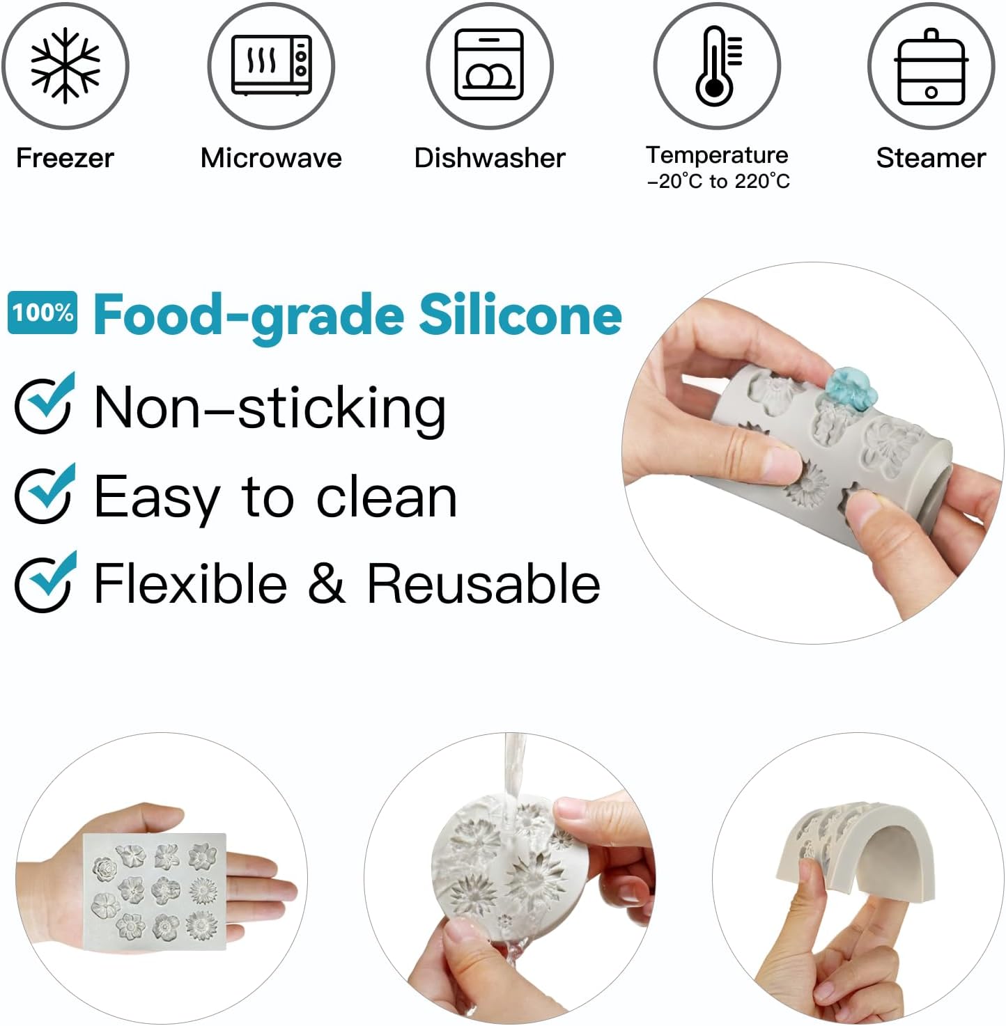 • Easy to Use and Clean: These flower silicone molds can handle temperatures from -4℉ to 392℉.They’re safe for the oven, microwave, freezer, and dishwasher. Cleanup is quick and easy, saving you time and effort