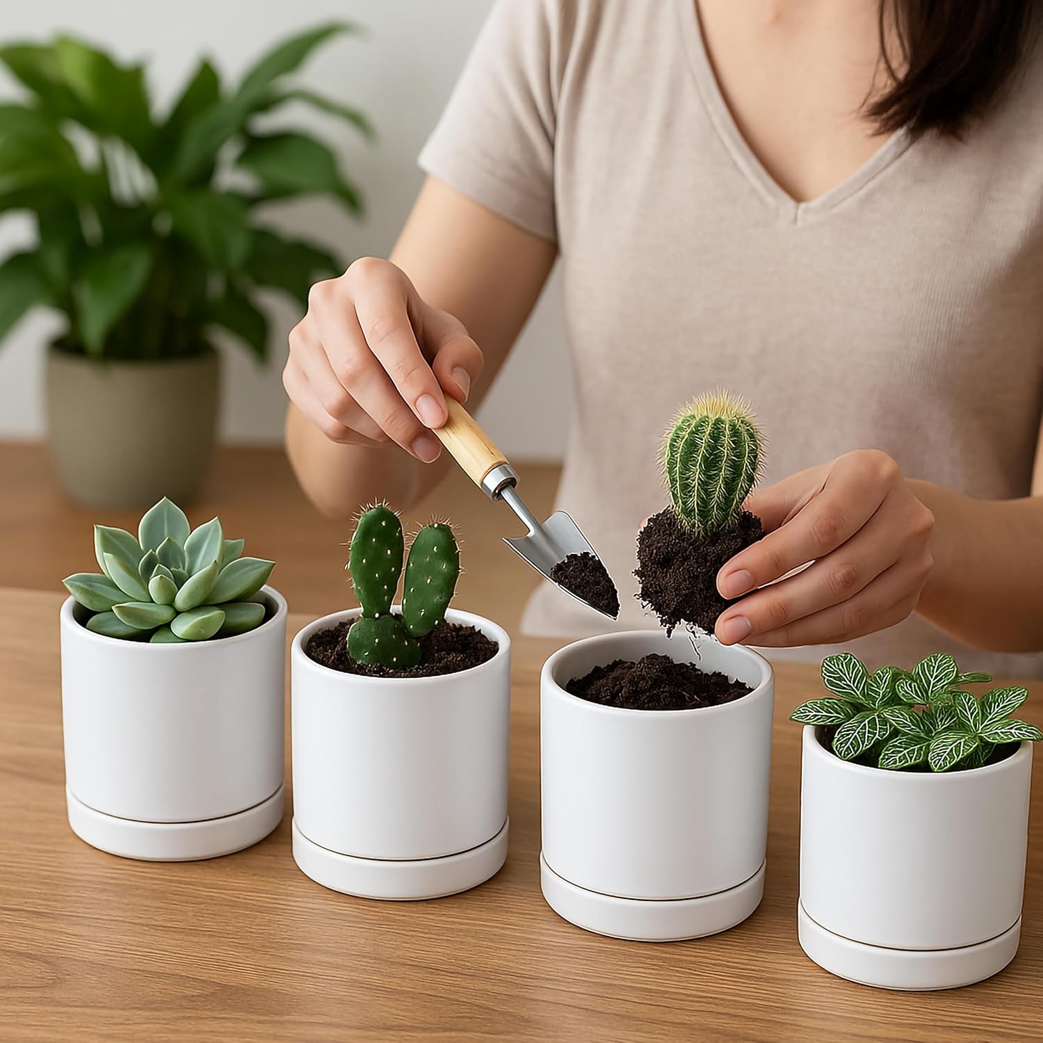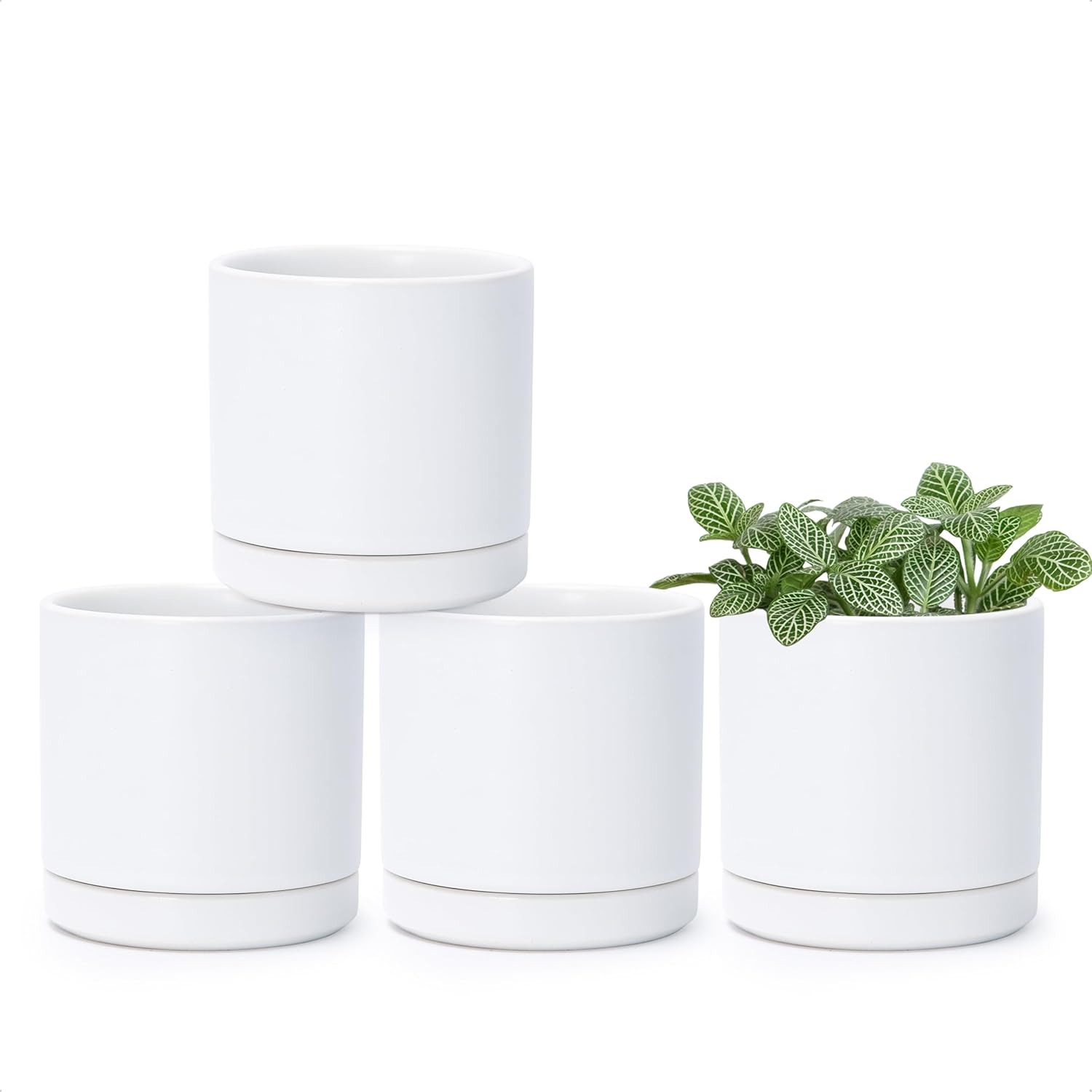 • Showcase your small houseplants or botanicals with set of 4 planter pots with saucers.