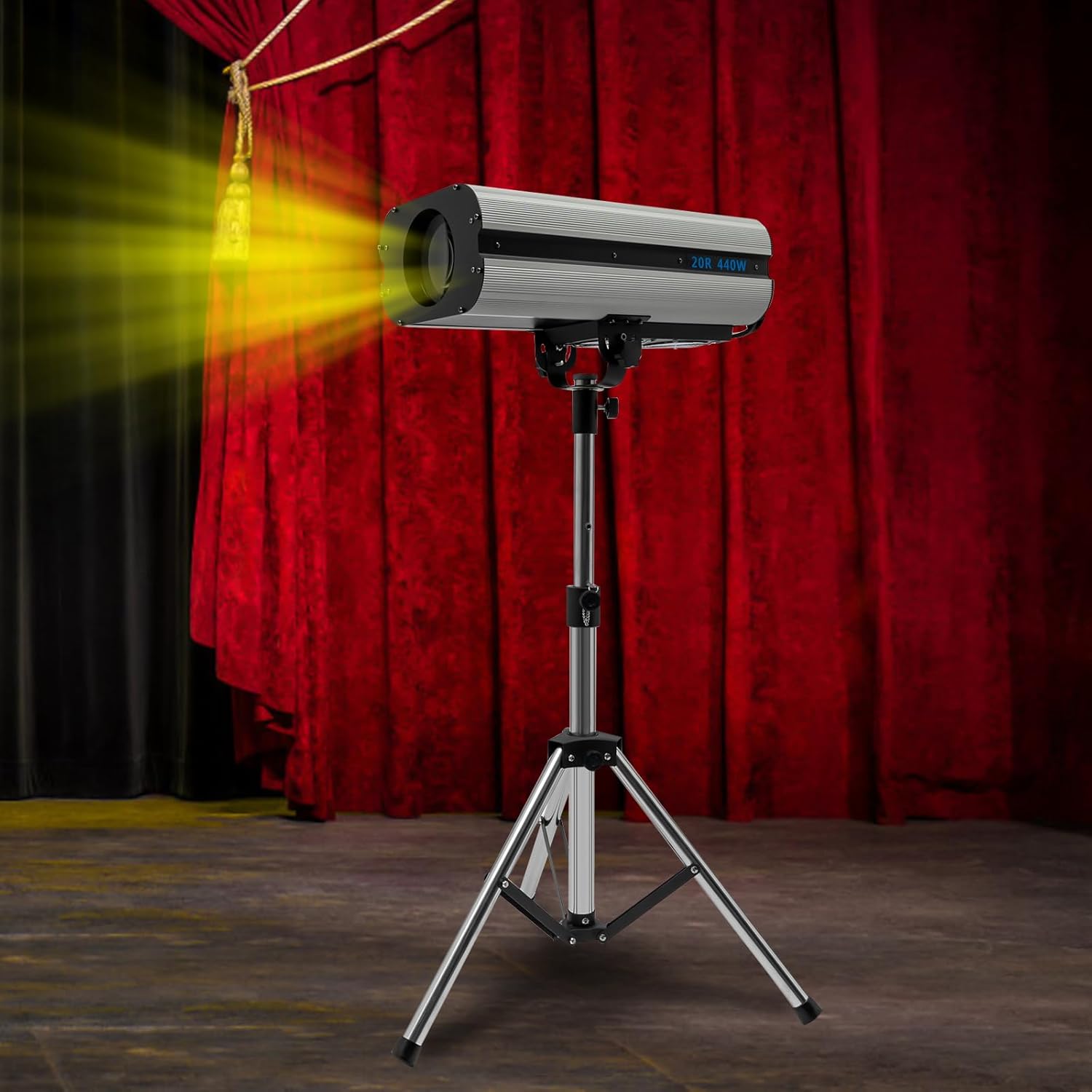 • Powerful Lighting: The 440W power, beam bulbs, and HD lens make its beam distance up to 328.08-393.7ft, providing you with a wider range of illumination clearly and stably to enhance your visual experience. Even in large venues, it can highlight the main body of the performance.