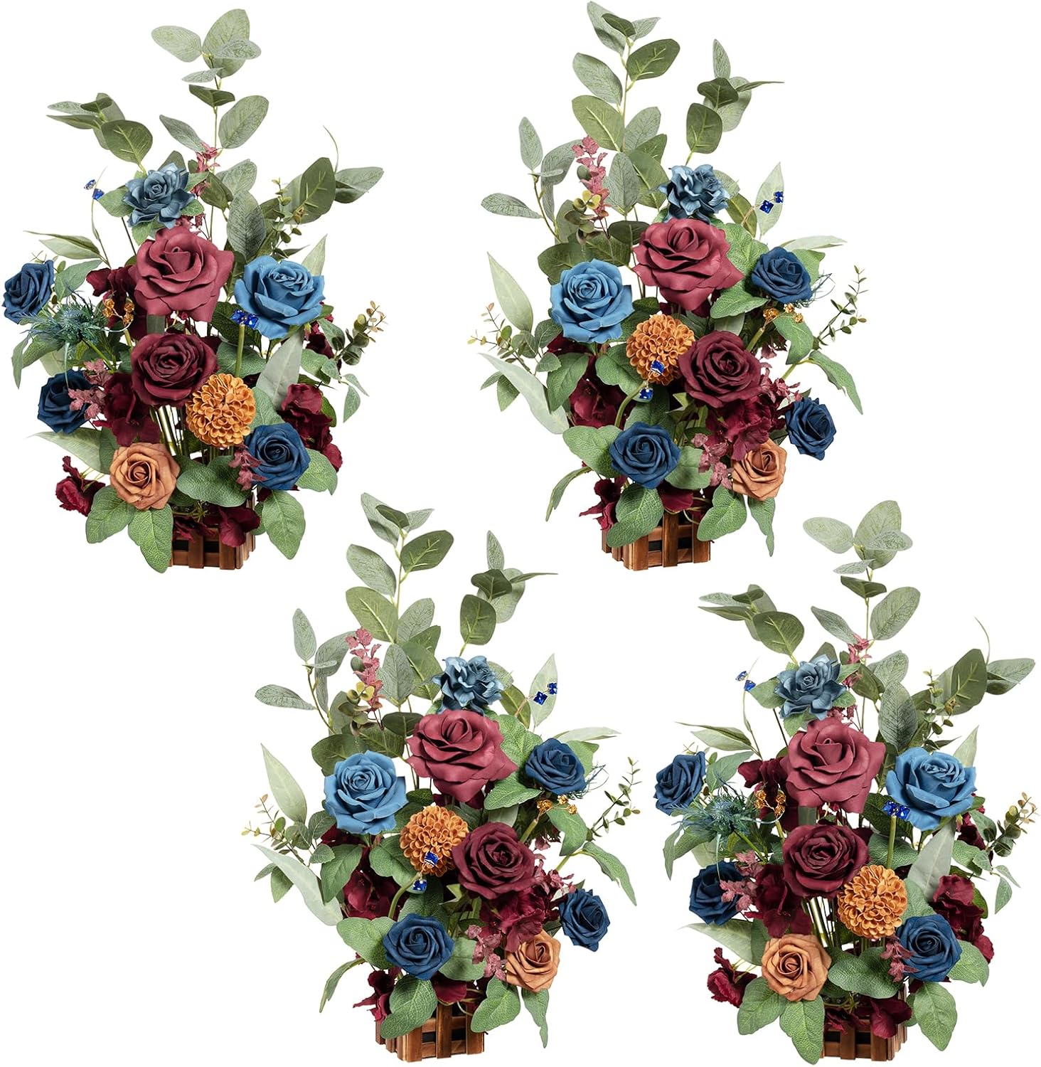 • WEDDING FLORAL DECOR DETAILS: Free-standing flower arrangement x 4, helps to create a romantic fall, burgundy & navy blue or winter wedding. These pre-made floral arrangements are perfect for decorating the wedding aisle, welcome entrance, table centerpieces, and wedding arch decor.