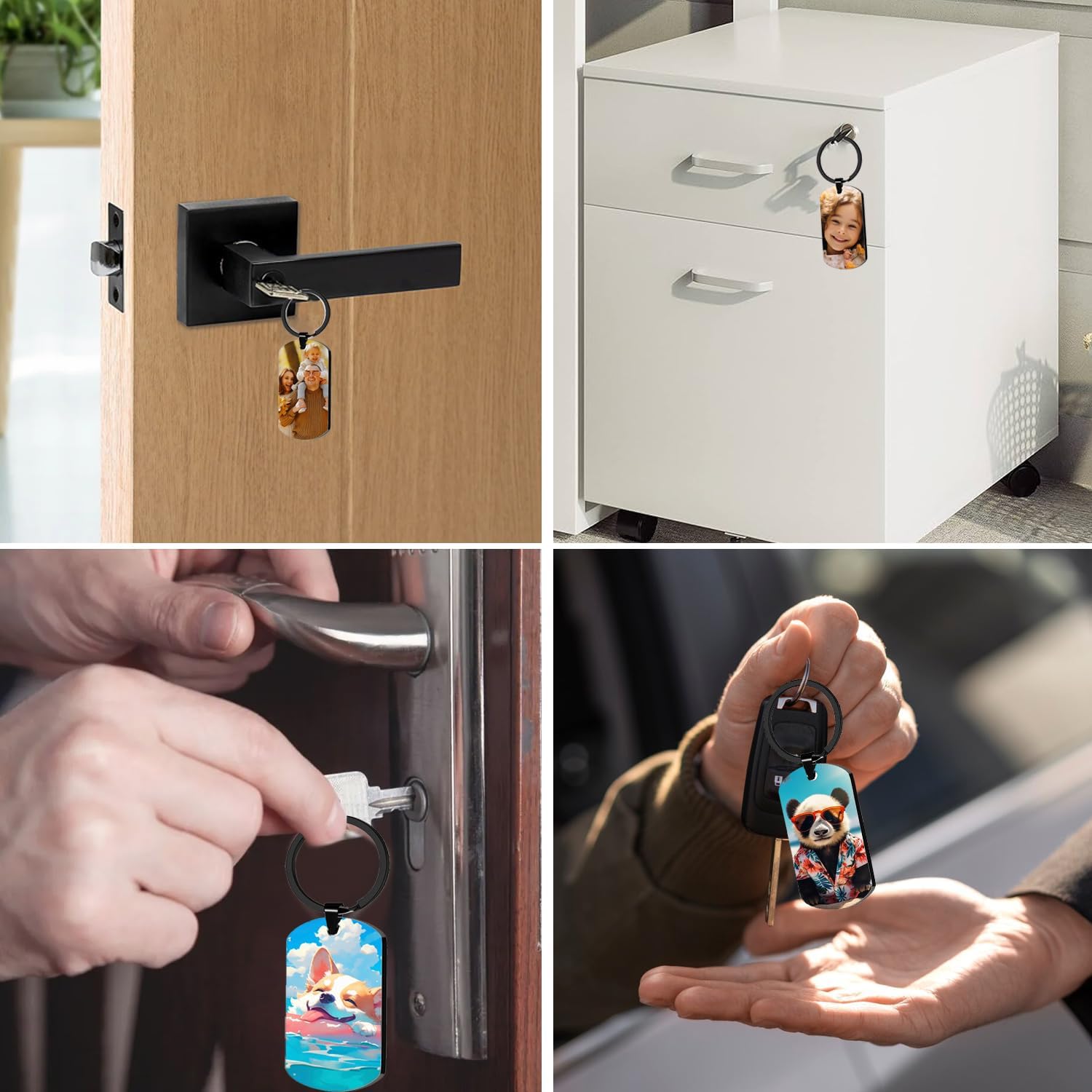 • 【Personalized Keychain with Photos】You can click "Customize Now" to upload your favorite high - definition pictures and the text you want to customize. We have a variety of styles for you to choose, You can use your imagination to create an unique keychain for yourself or your loved ones.