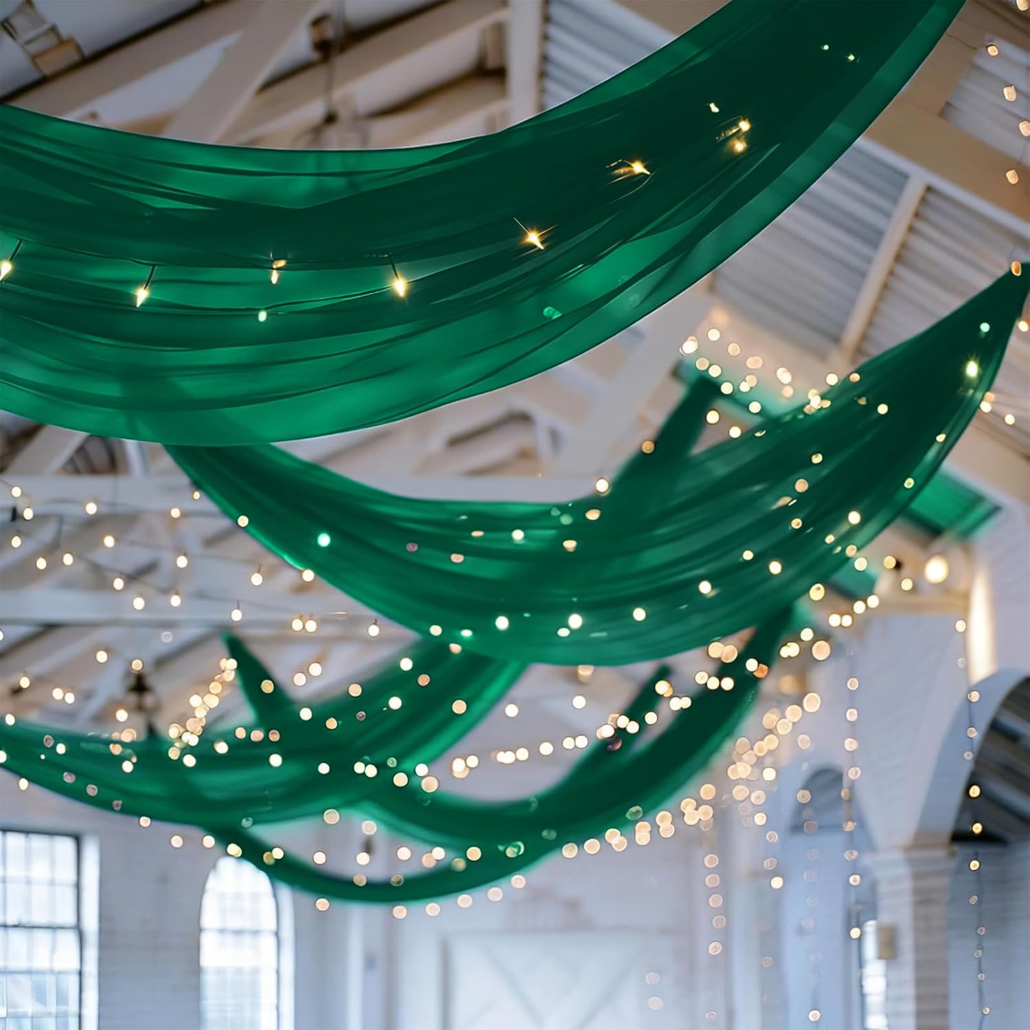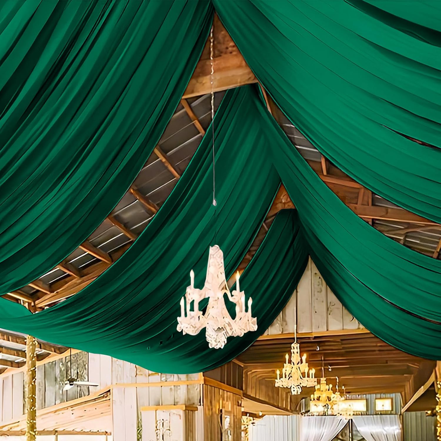 6 Panels Emerald Green Ceiling Drapes for Wedding 5ftx20ft Chiffon Fabric Arch Draping Curtains Sheer Drapery for Party Ceremony Birthday Baby Shower Reception Stage Swag Ceiling Decorations