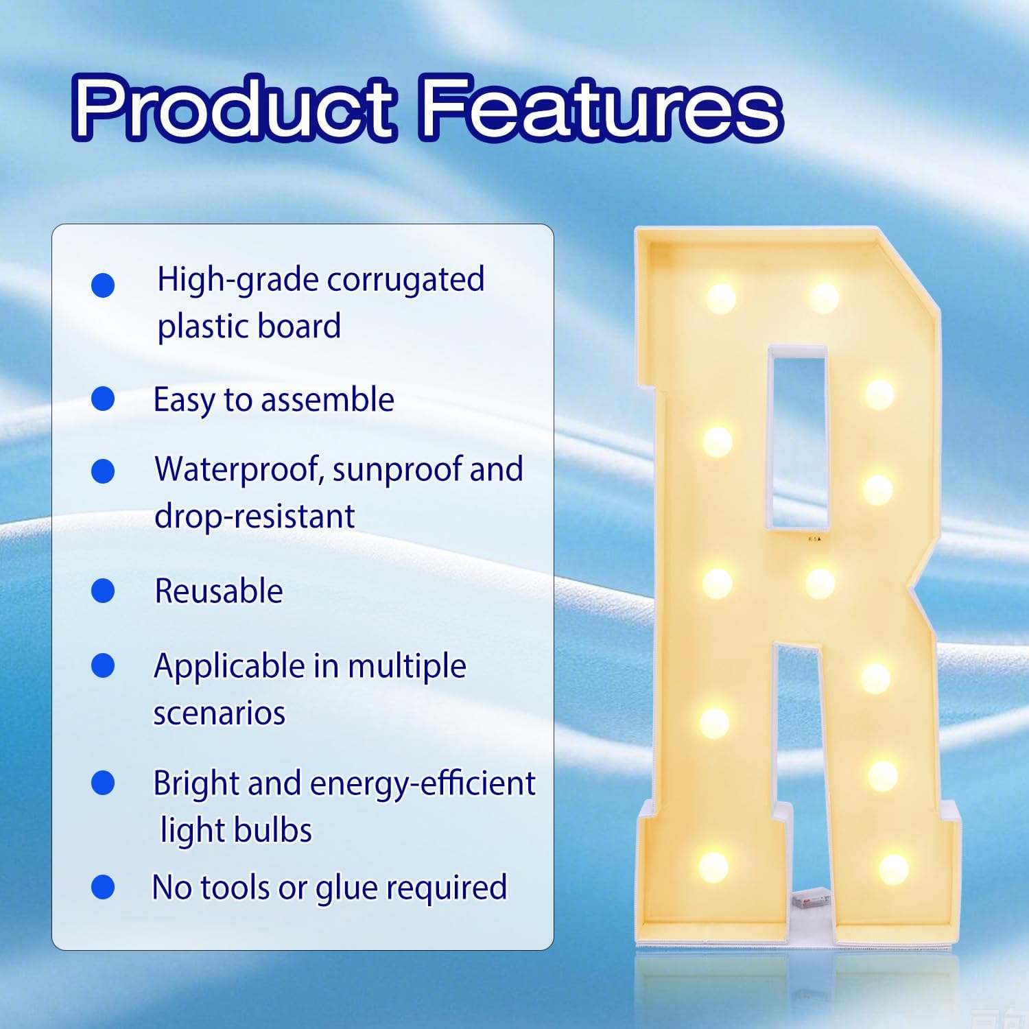 4FT Marquee Plastic Letters R - Light up Letters Are Made from Corrugated Plastic Board - Quick Assembly Without Tools, Disassembled Components Can Be Used for Garage Sale Signs, Yard Sale Signs
