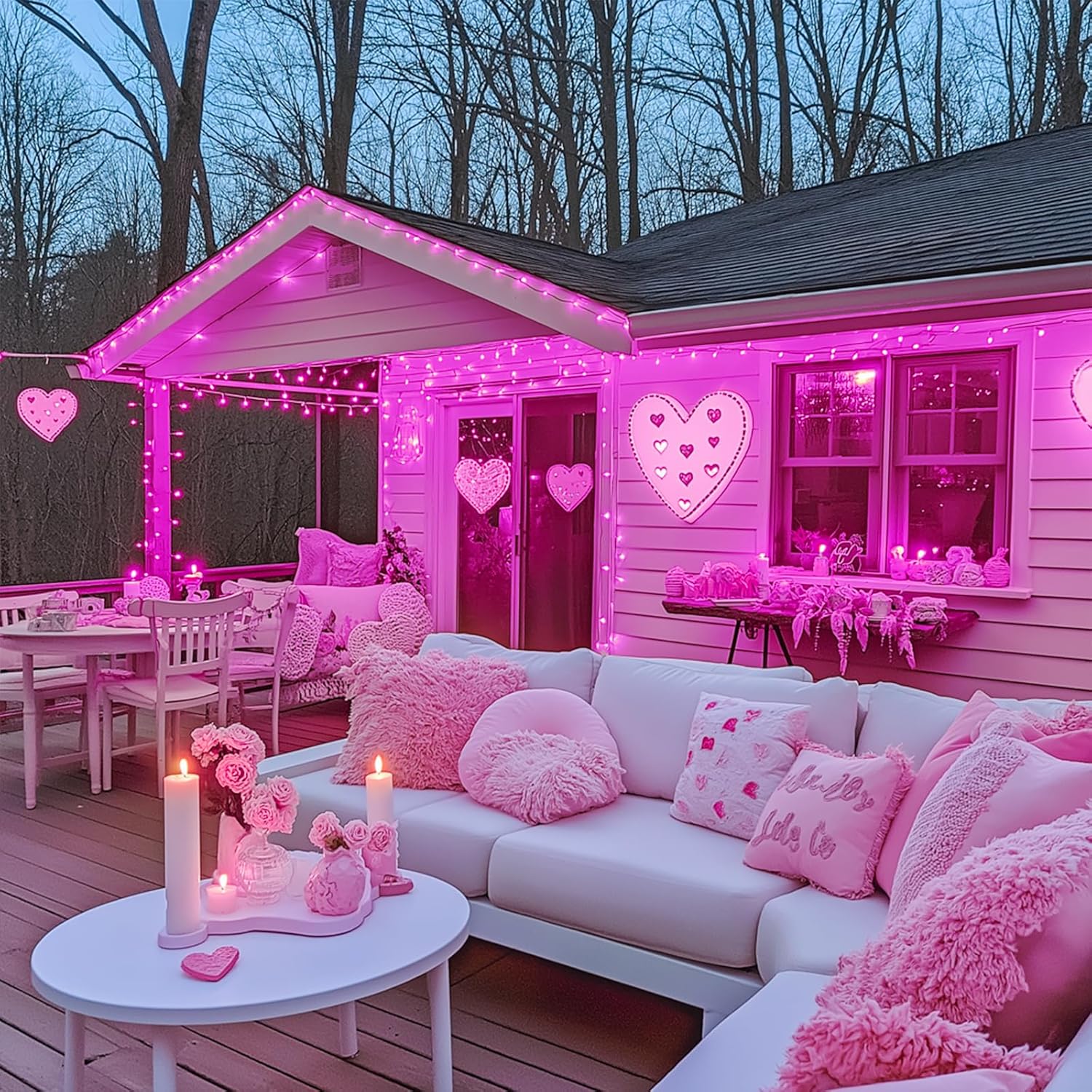 • 【Waterproof & Safe Christmas Lights Outdoor】Waterproof design pink LED Christmas lights are perfect for both indoor and outdoor decorations. Don’t worry about using it in rain or snow. The premium material makes it tough and sturdy, not easy to break, has the characteristics of low voltage and low power consumption. The adapter of Christmas lights passes with UL certification to ensure personal safety. Note: The transformer is NOT waterproof, please place it in a dry place.