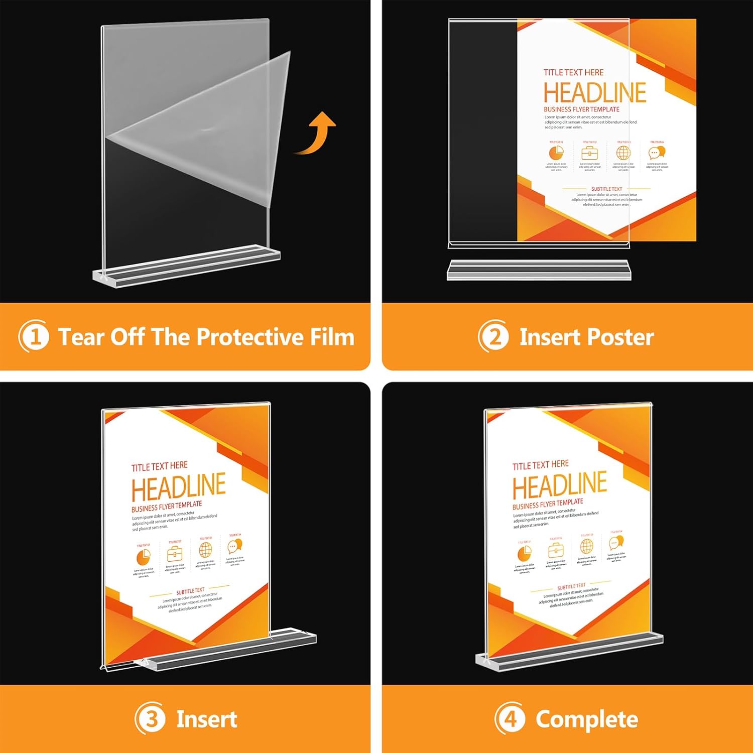 • Double-Sided Display Stands: Clear sign holder allows your flyer to be displayed and protected on both sides, the acrylic stand stands vertically, which greatly enhances the display effect of your content.