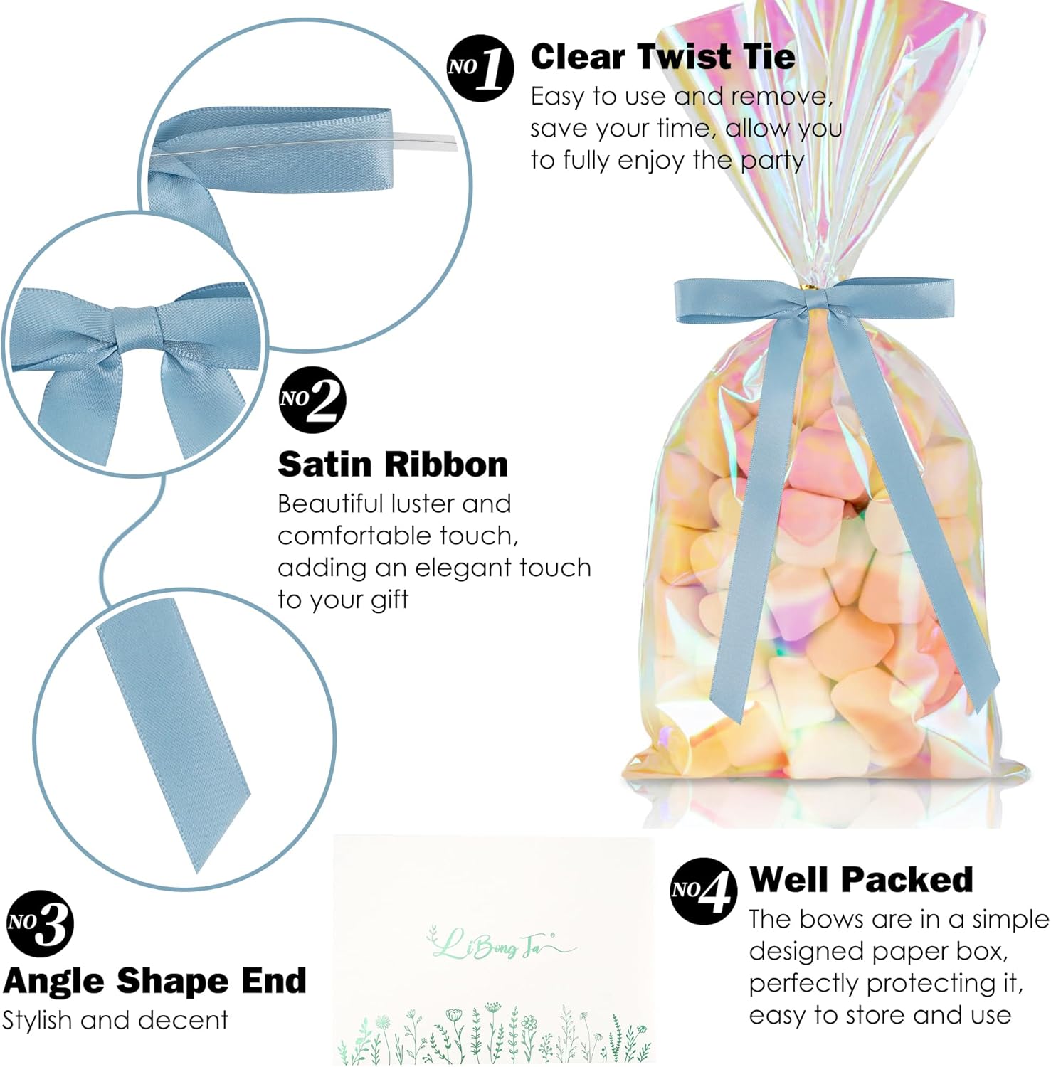 50 PCs Dusty Blue Bow 5 Inch Long Tail Bows for Gift Wrapping, Easter Bow Party Decorations, Twist Tie Bows, Satin Bows for Crafts, Premade Bows for Presents, Treat Bags, Bottles, Cakes