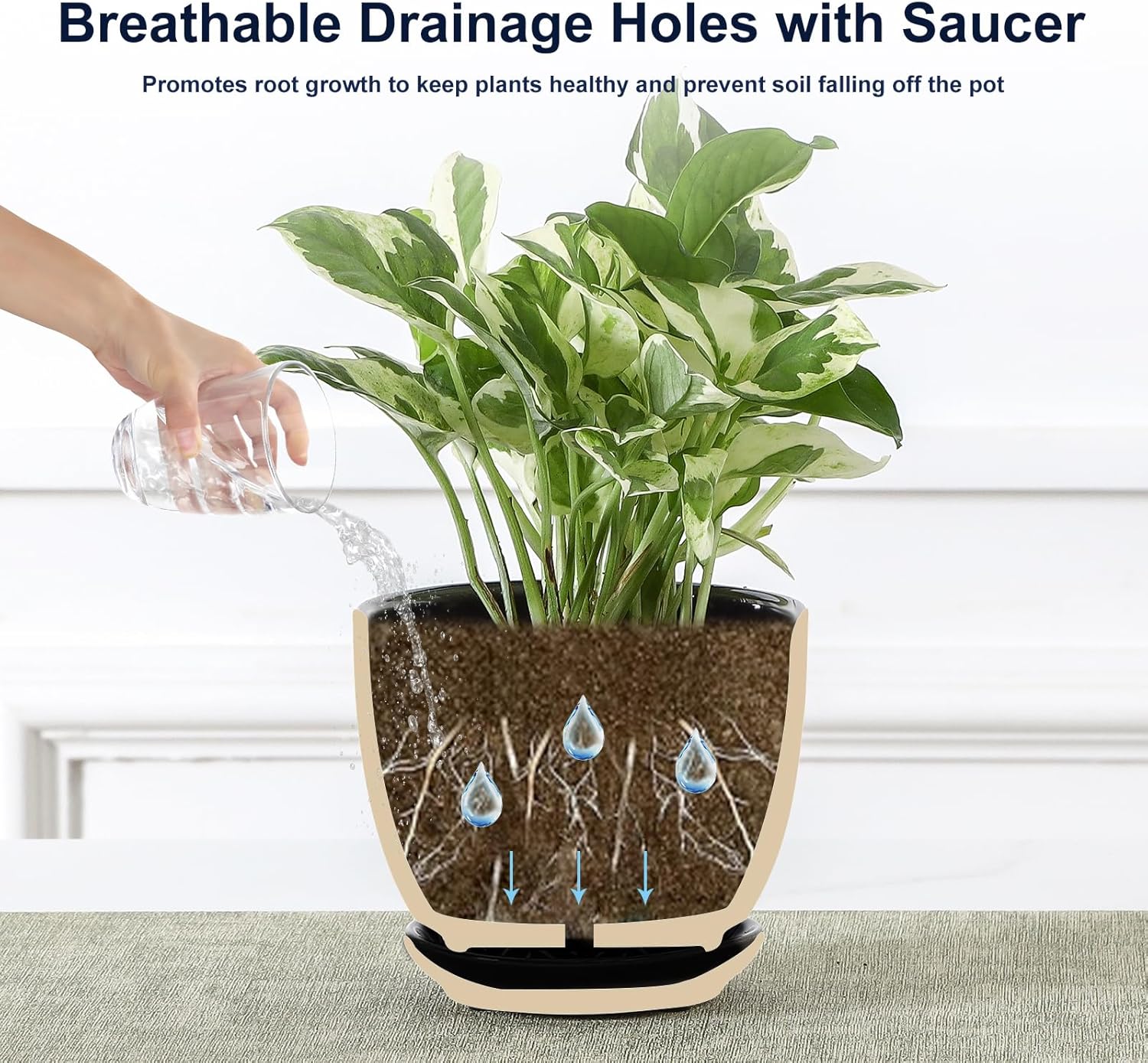 • Minimalist Design of Houseplant Pot: These indoor planters are designed with four different embossed patterns that make it easy to mix and match plants to create a elegant look, decorating windowsill, tabletop, shelve, kitchen, living room, bedroom, office, garden and patio. These flowerpots have a minimalist design and combination solid color glaze that blend seamlessly with a various of home styles
