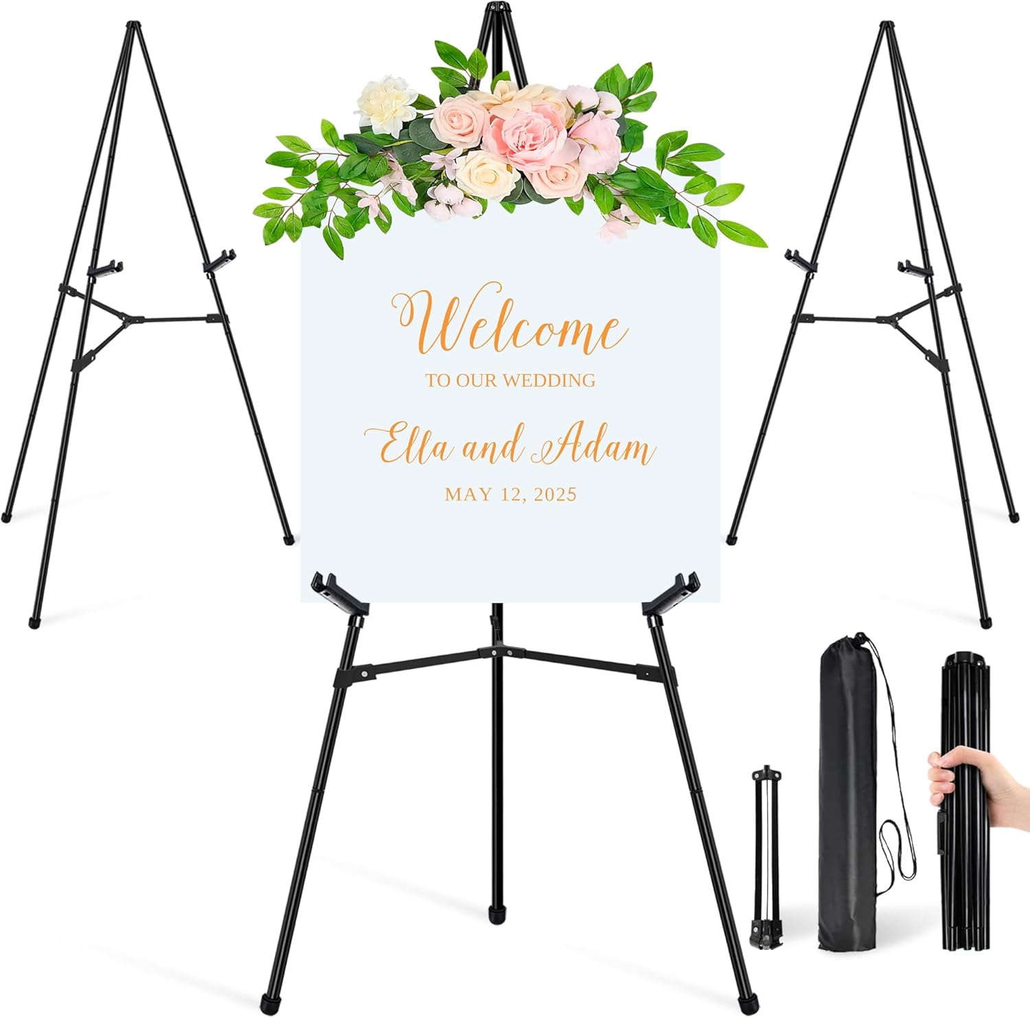 3Pcs Easel Stand for Sign - 63" Display Easel for Wedding Sign Stand Poster Stand, Lightweight Poster Easel for Painting, Folding Portable Easel Stand with Carrying Bag, Black