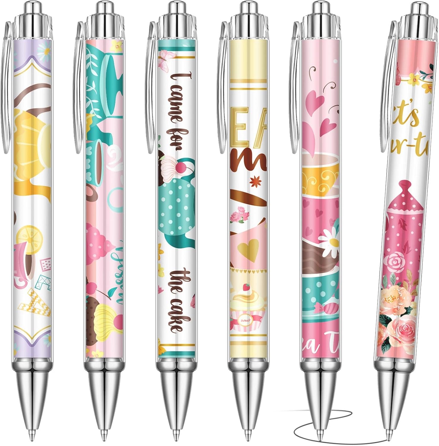 • What You Can Get: you'll get 24 tea party gifts pens in 6 different patterns, 4 pieces of each, plenty of fun patterns to meet your daily needs; There are exquisite tea party theme patterns and words on the pens, which are full of gratitude