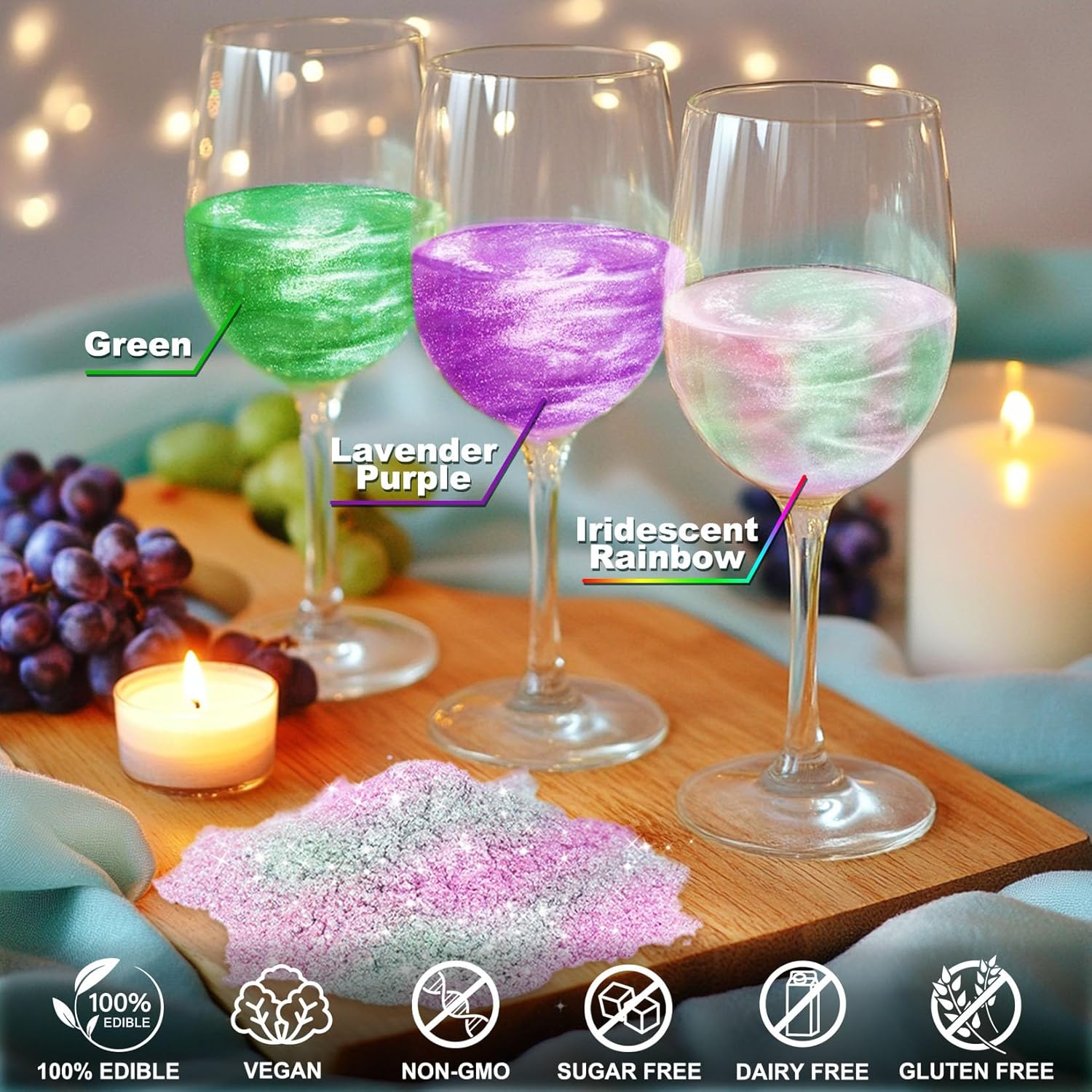 • Food Grade & Vegan - Made from high-quality food-grade ingredients, our edible glitter for drinks is non-GMO, non-dairy, non-gluten. Enjoy peace of mind knowing that our drink glitter won't alter the taste of your favorite treats!
