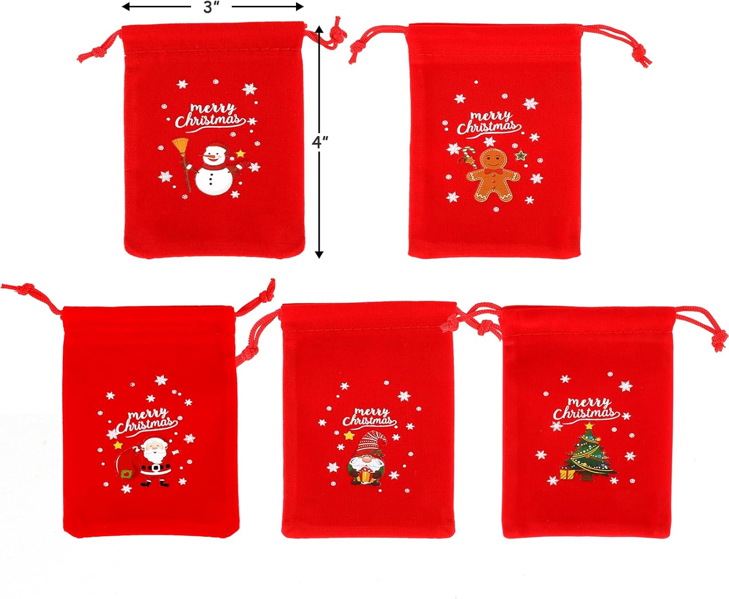 Tapleap Velvet Coth Christmas Bags with Drawstring, 50Pcs 3x4 for Wrapping Christmas Party Favors or Gifts for Friends, Children, Customers
