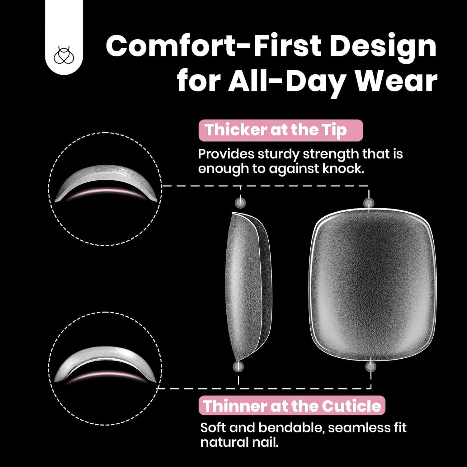 • Full Matte Press on Toe nails: The soft gel toe nail tips are constructed with a thick front edge and a thin back edge, the thickened front edge makes the nails less prone to chipping and more resistant to knocks, the thin back edge ensures a seamless fit with your natural nails, giving your toes a very natural appearance