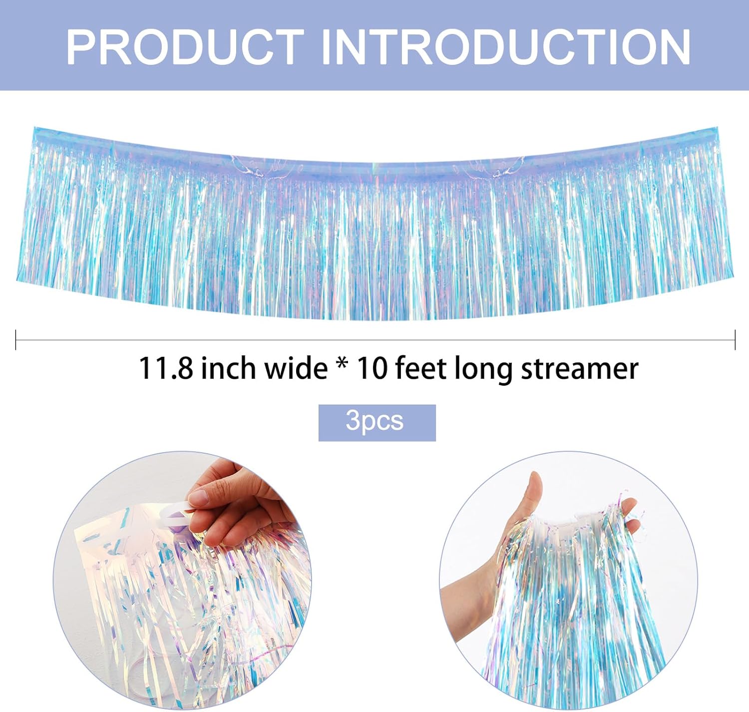 BEISHIDA 3 Packs 30 Feet Metallic Foil Fringe Garland Tinsel Streamers,Iridescent Blue Wall Hanging Tinsel Fringe Banners for Wedding Birthday Party Decoration Halloween Christmas New Year