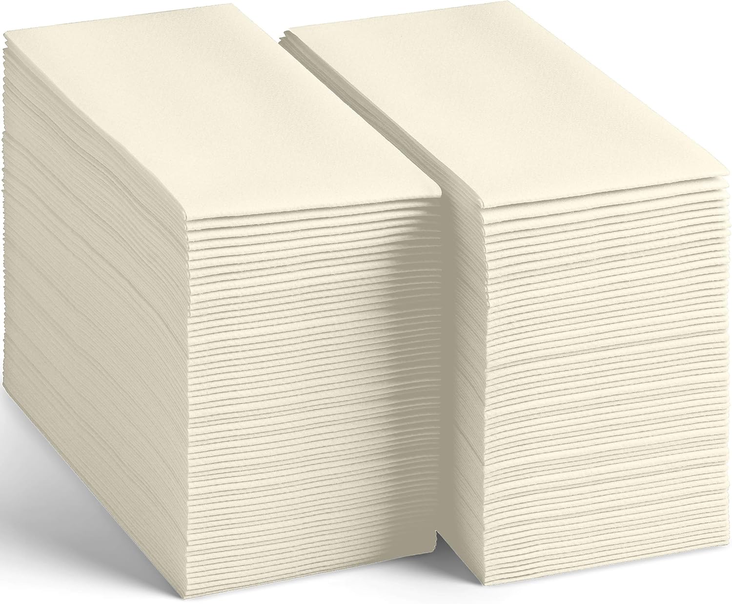 200-Pack Disposable Linen-Feel Champagne Napkins, 12" x 17" Cloth-Like Paper Dinner Napkins For Wedding, Bathroom, Party Or Event