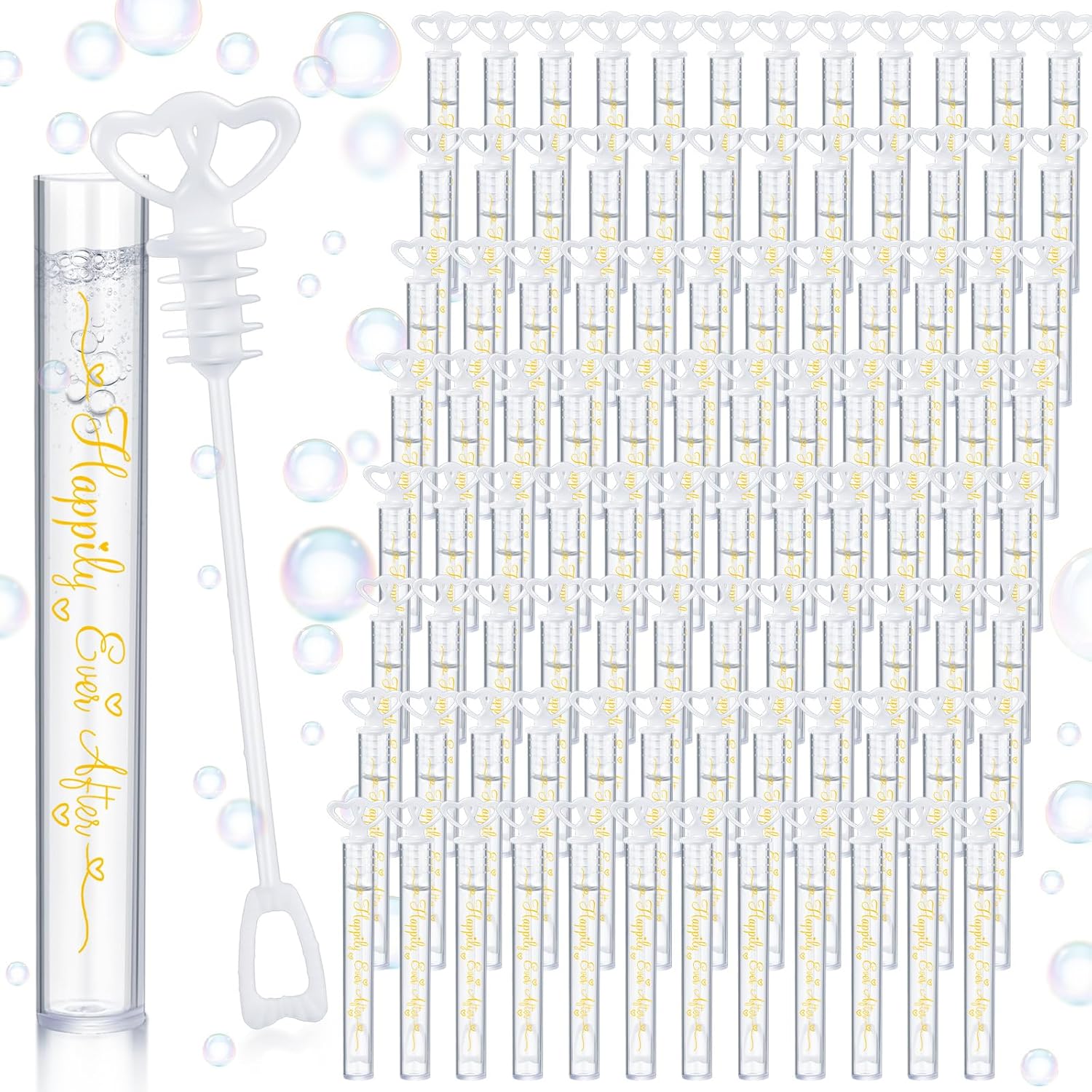 • Romantic Double Heart Design: our bubble tubes feature a charming double heart top design with the words "happy ever after" in the bubble tubes; Further sealed with a rubber stopper, these bubble tubes demonstrate a thoughtfulness that ensures the bubble solution does not leak during transportation and your guests' experience is pleasant