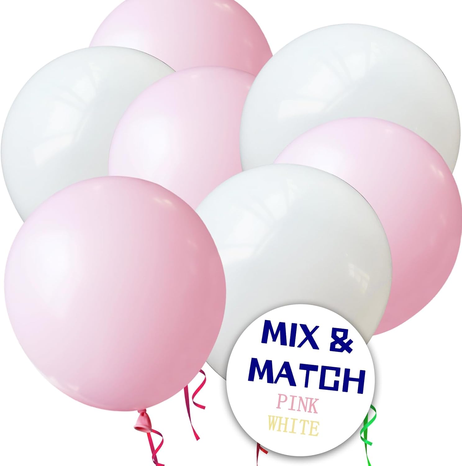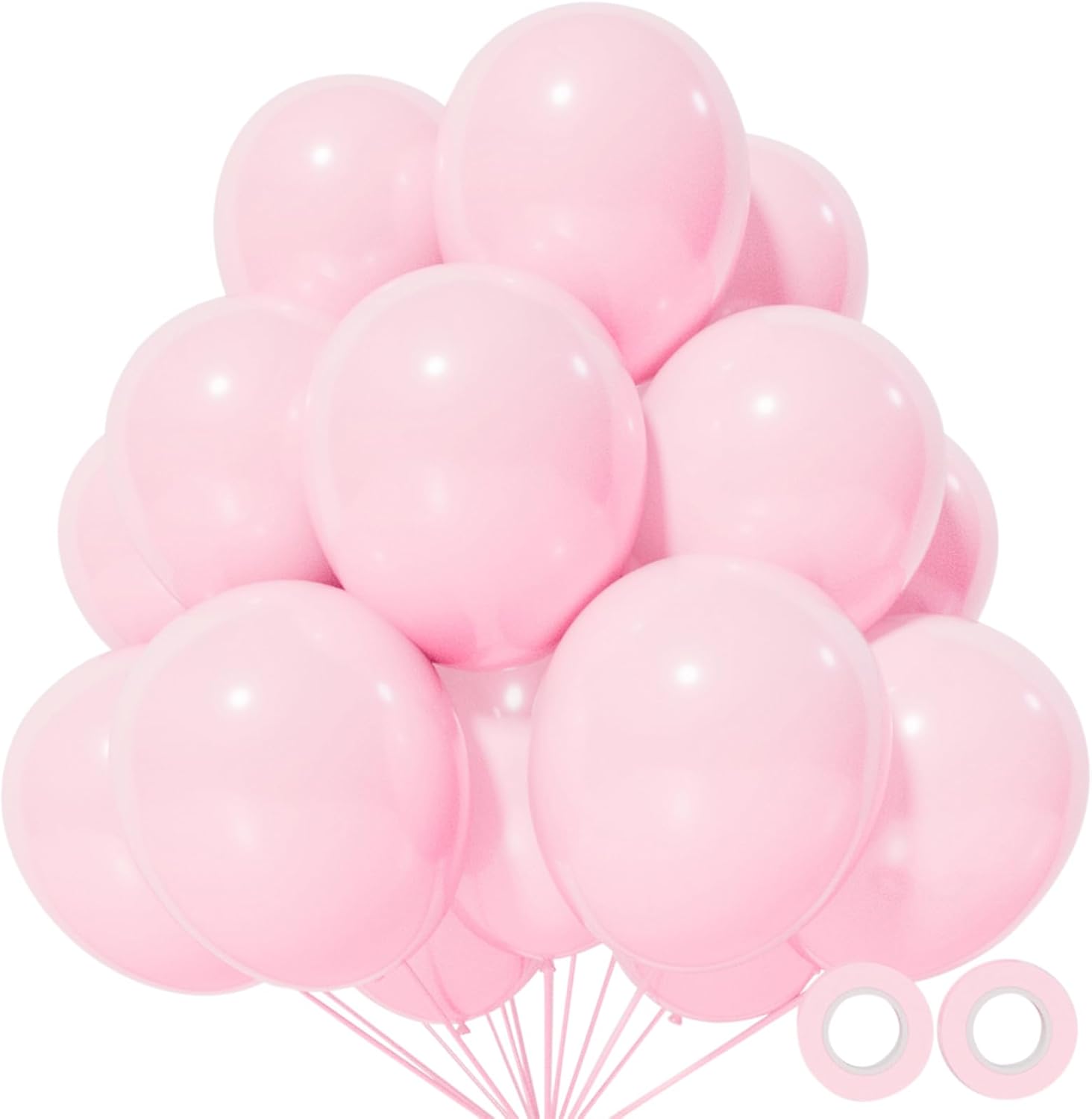 • Order us you will get 110pcs 12 inch light pink baloons and 2 rolls of ribbons in random colors.