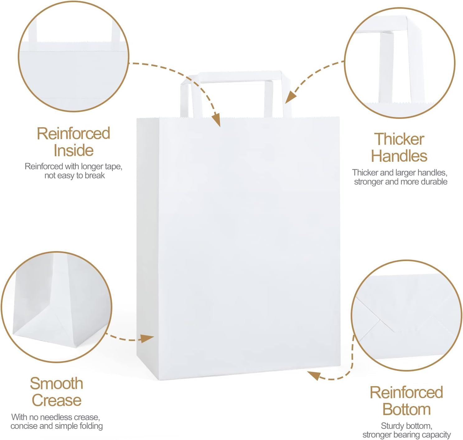 • Multi-purpose Kraft Paper Bags-these white kraft paper bags with handles can be used as paper shopping bags, gift bags, wedding gift bags, retail bags, merchandise bags, party favors for kids goodie bags or food service takeaway bags, etc.