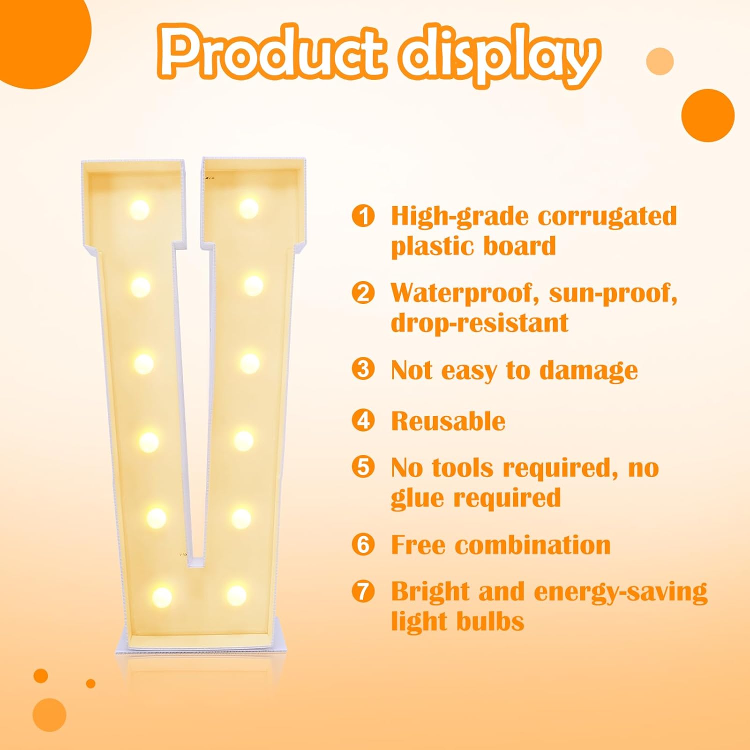 • Large Marquee for Letters 4 Feet Tall: Why settle for ordinary? Get premium corrugated board, stunning large light up letters that will elevate your party decor and leave a lasting impression. 4ft marquee for letters add style and fun to your party