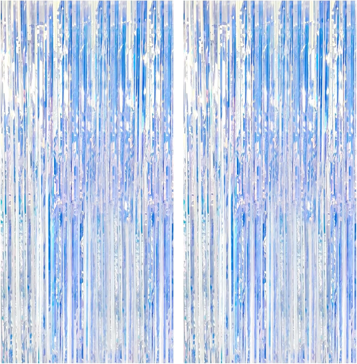 2 Pack Iridescent Party Backdrop Decorations Tinsel Curtain Birthday Decorations Foil Fringe Photo Booth Streamer Backdrop Iridescent Theme Christmas Bachelorette Graduation Party Decorations