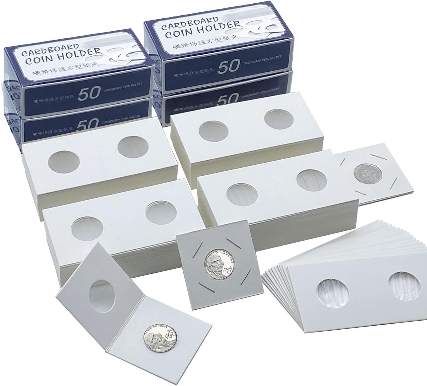 • CARDBOARD COIN FLIPS: 200 Pieces 2" x 2" coin holders , A box of 50 pieces. Coin collection supplies size: 23mm / 0.9 inch, which are thicker and more rigid then most flips on the market