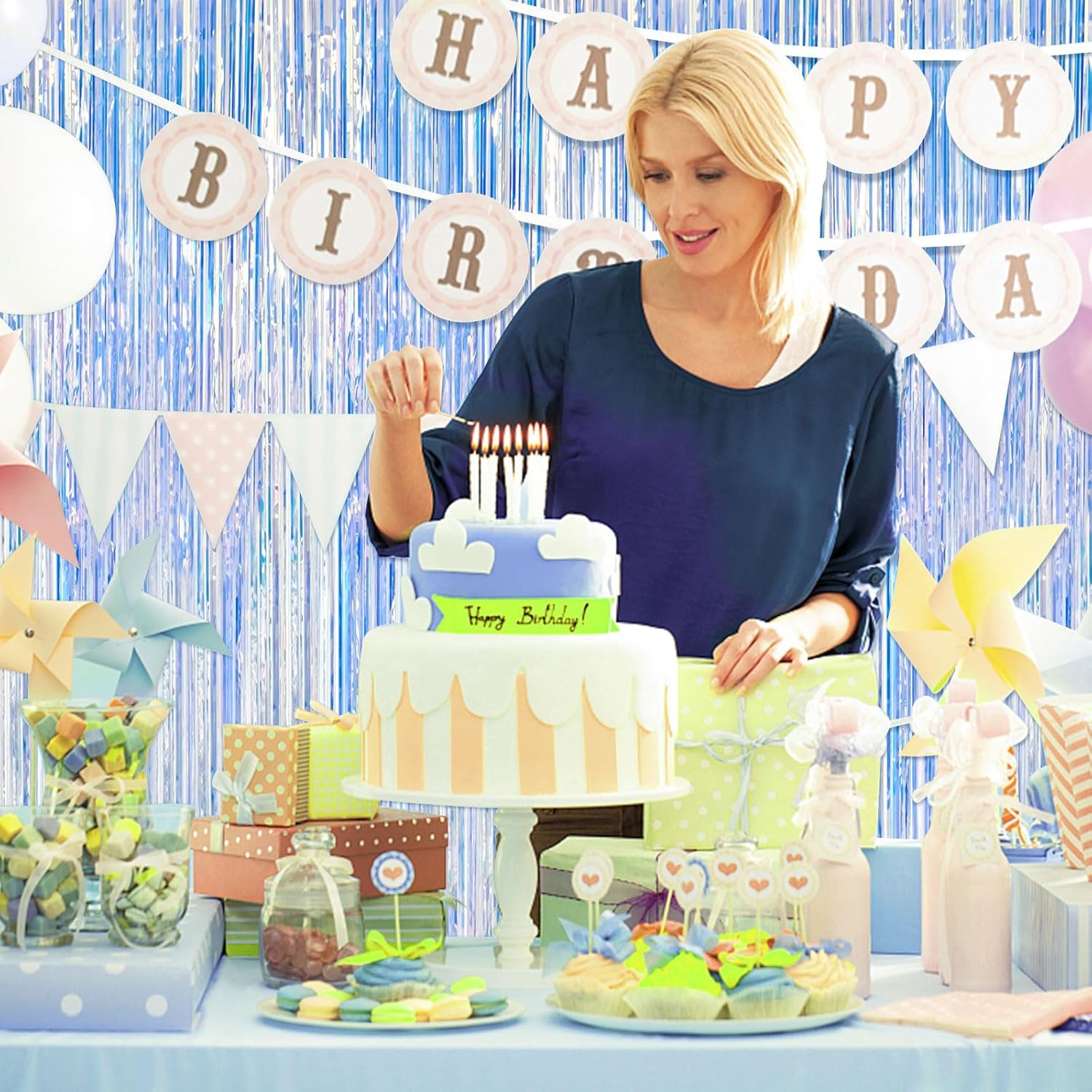 • Material: This tinsel backdrop is made of high-quality shiny tinsel. Metallic streamers are available in a variety of beautiful colors with a shiny and reflective surface that creates an eye-catching and mesmerizing effect. Sparkle and bling will definitely create a shiny nice atmosphere for your party.