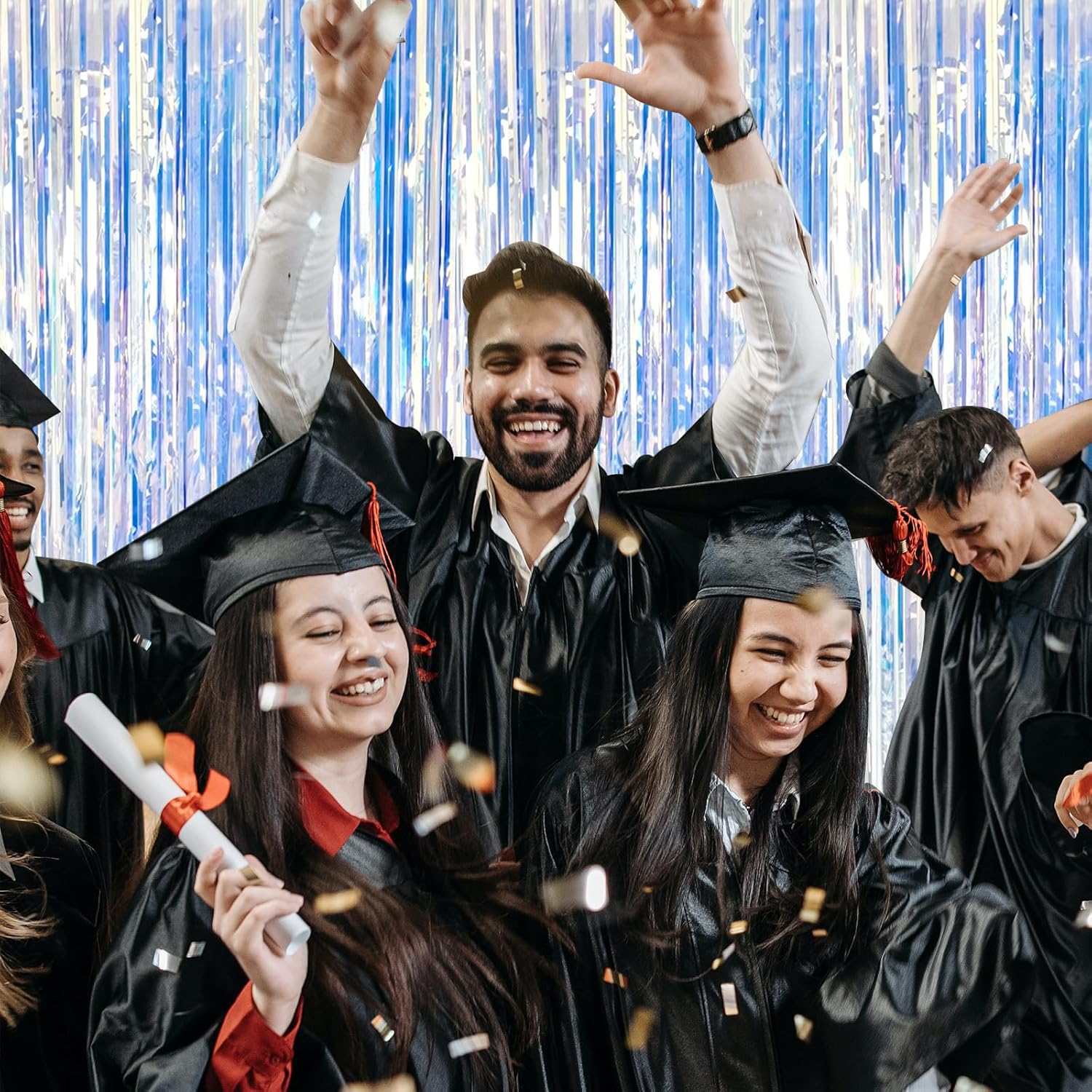 • Party Streamers Backdrop: 10Packs/Set, each pack curtains size is 3.28 ft x 6.56 ft, enough length foil fringe backdrops are perfect for the door or wall to create an impressive decoration for parties, events, and photo booths. Create your own party decorations now!