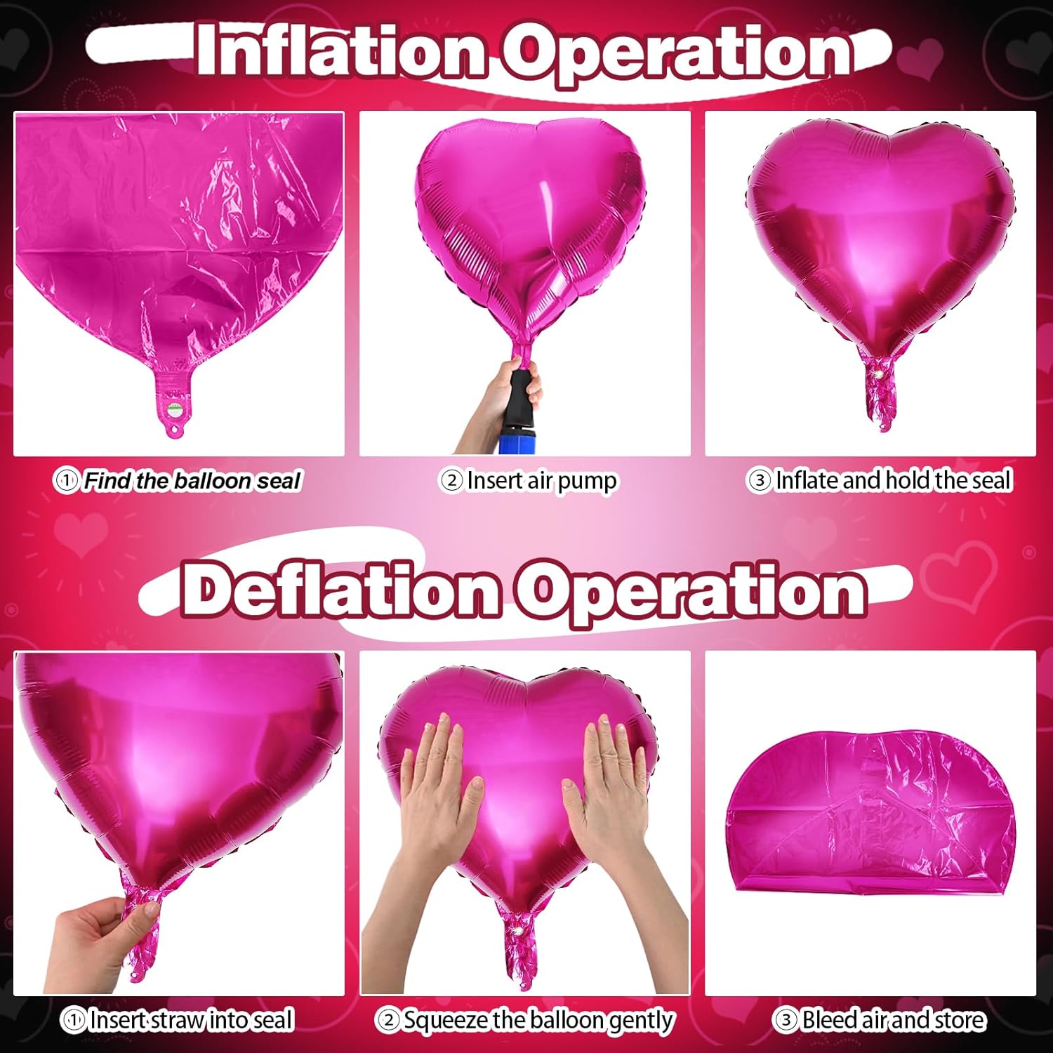 • Easy to Use: The heart foil can inflate with helium or air, can be self-sealed. It is recommended to inflate to 80%-85% to prevent the balloon from bursting. Inflating with helium makes them float, enhancing the effect even more